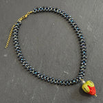 Collar de cristales y cerámica. Mide 40 cm y cuenta con una cadena ajustable de acero inoxidable de 5 cm.