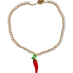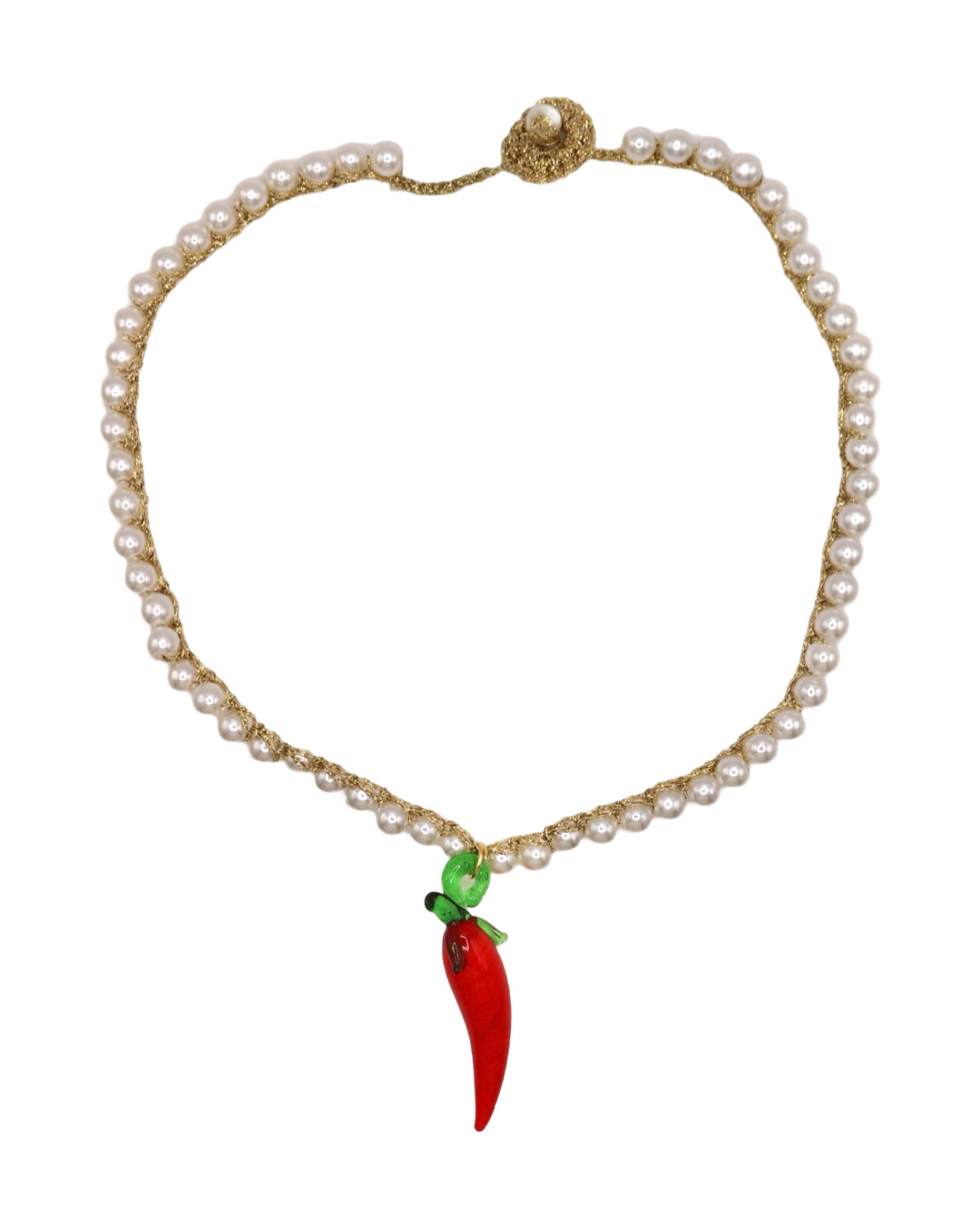 Collar de cristal soplado hecho a mano en crochet con bolas estilo perlado. La cadena mide 40 cm aproximadamente.