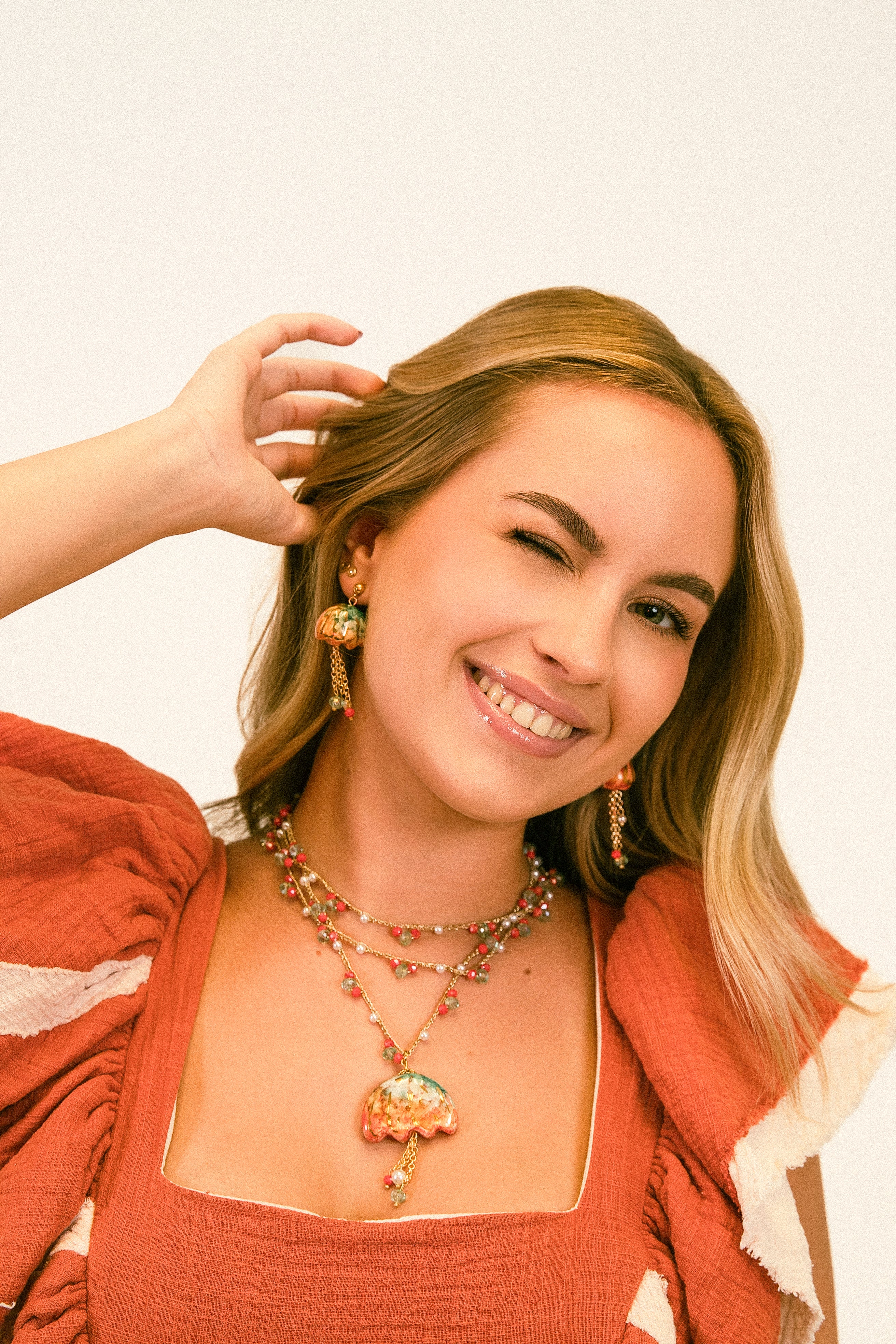 Cada collar, pulsera o pendiente está pensado desde cero: seleccionamos cada material con amor, combinamos colores que nos hacen sonreír y montamos a mano en nuestro taller. No hay dos piezas iguales, porque tú tampoco lo eres.