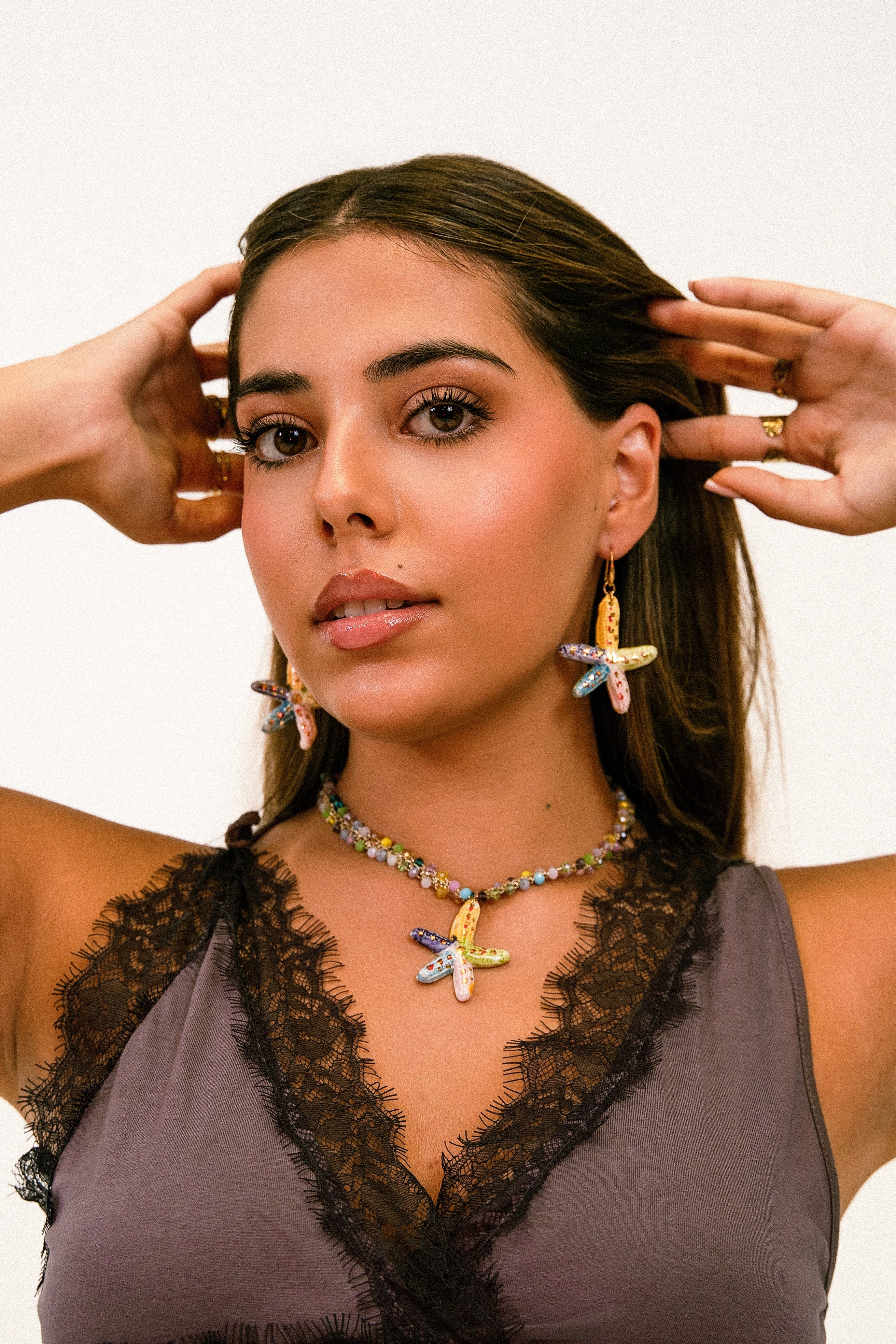 Cada collar, pulsera o pendiente está pensado desde cero: seleccionamos cada material con amor, combinamos colores que nos hacen sonreír y montamos a mano en nuestro taller. No hay dos piezas iguales, porque tú tampoco lo eres.