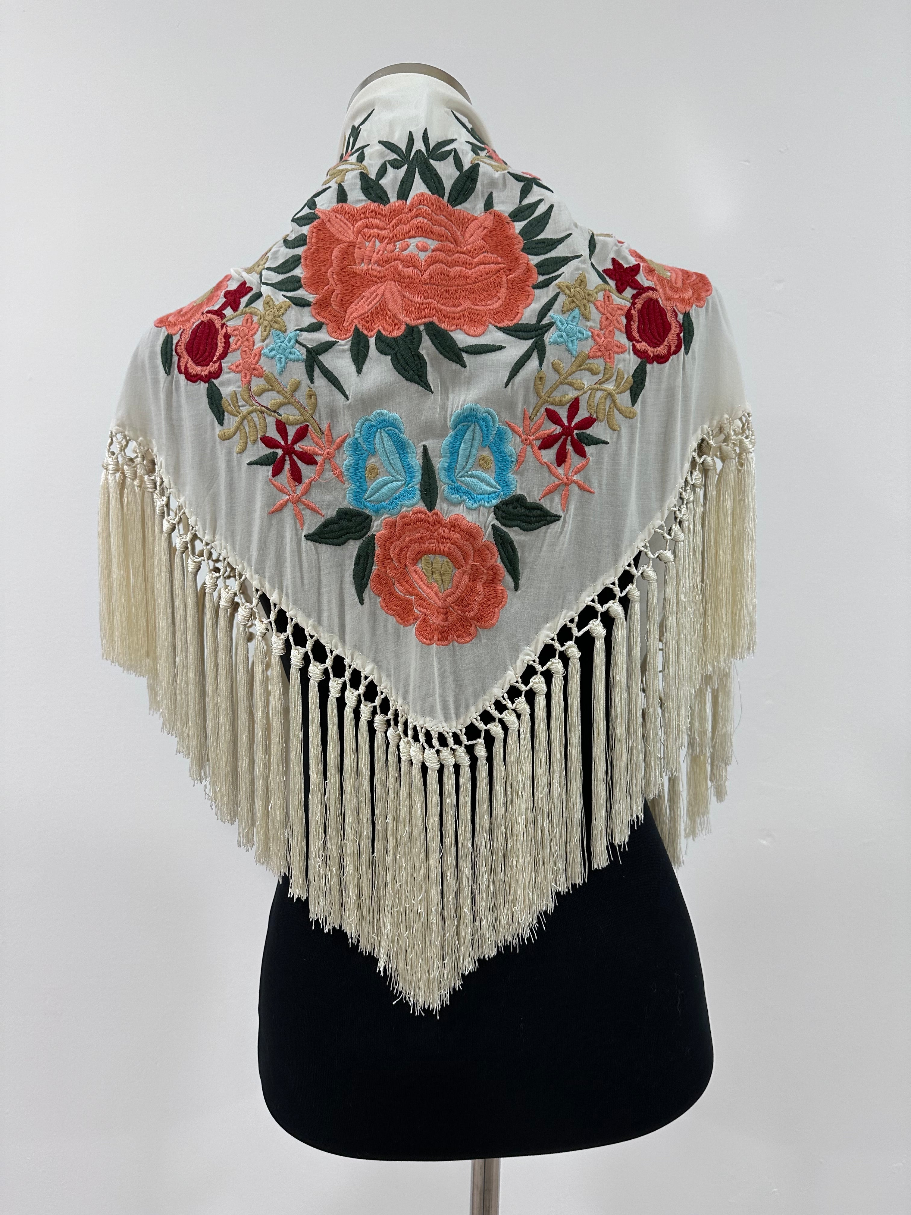 Mantón blanco roto bordado Cantillana