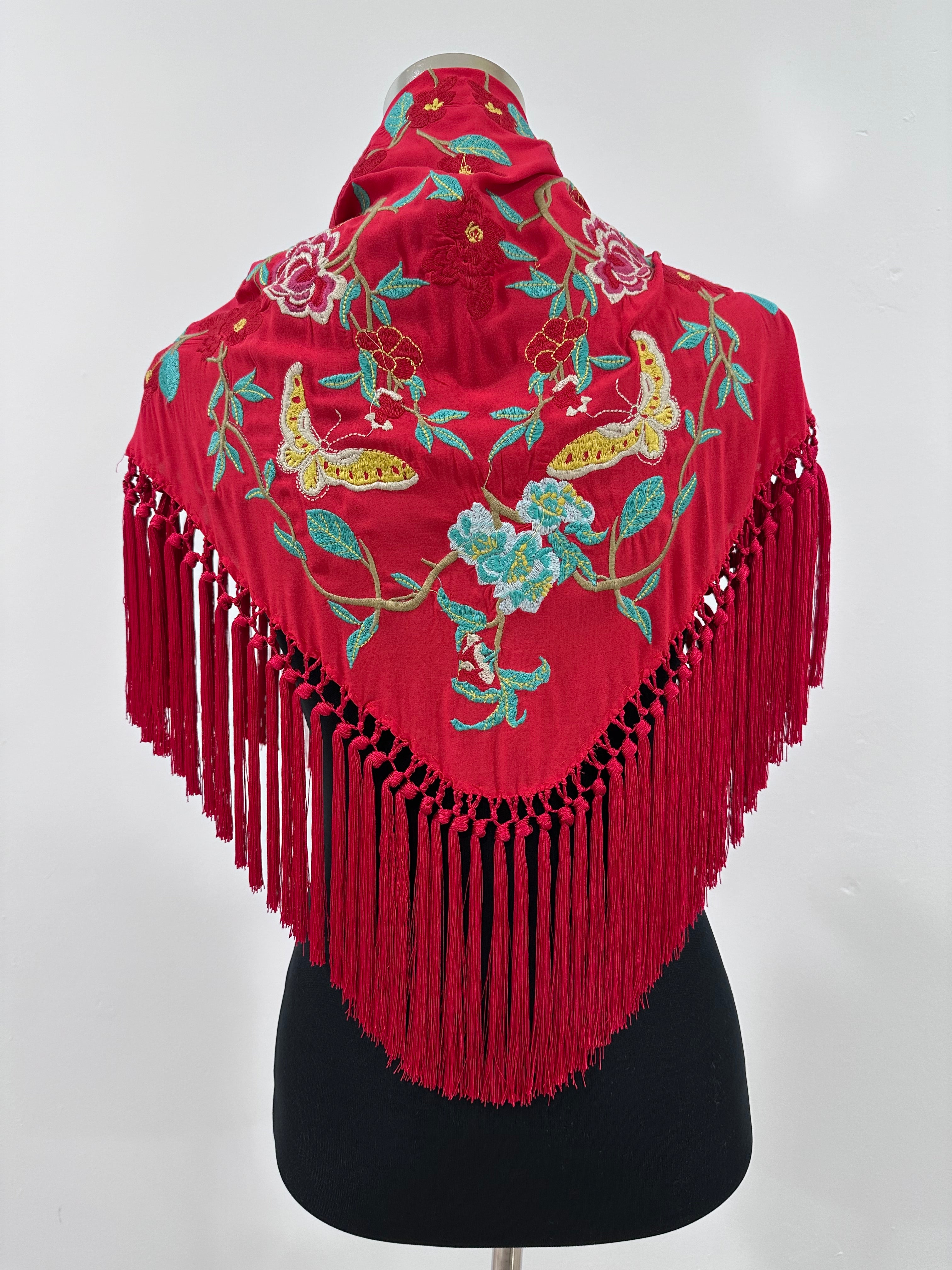 Mantón rojo vivo bordado Cantillana
