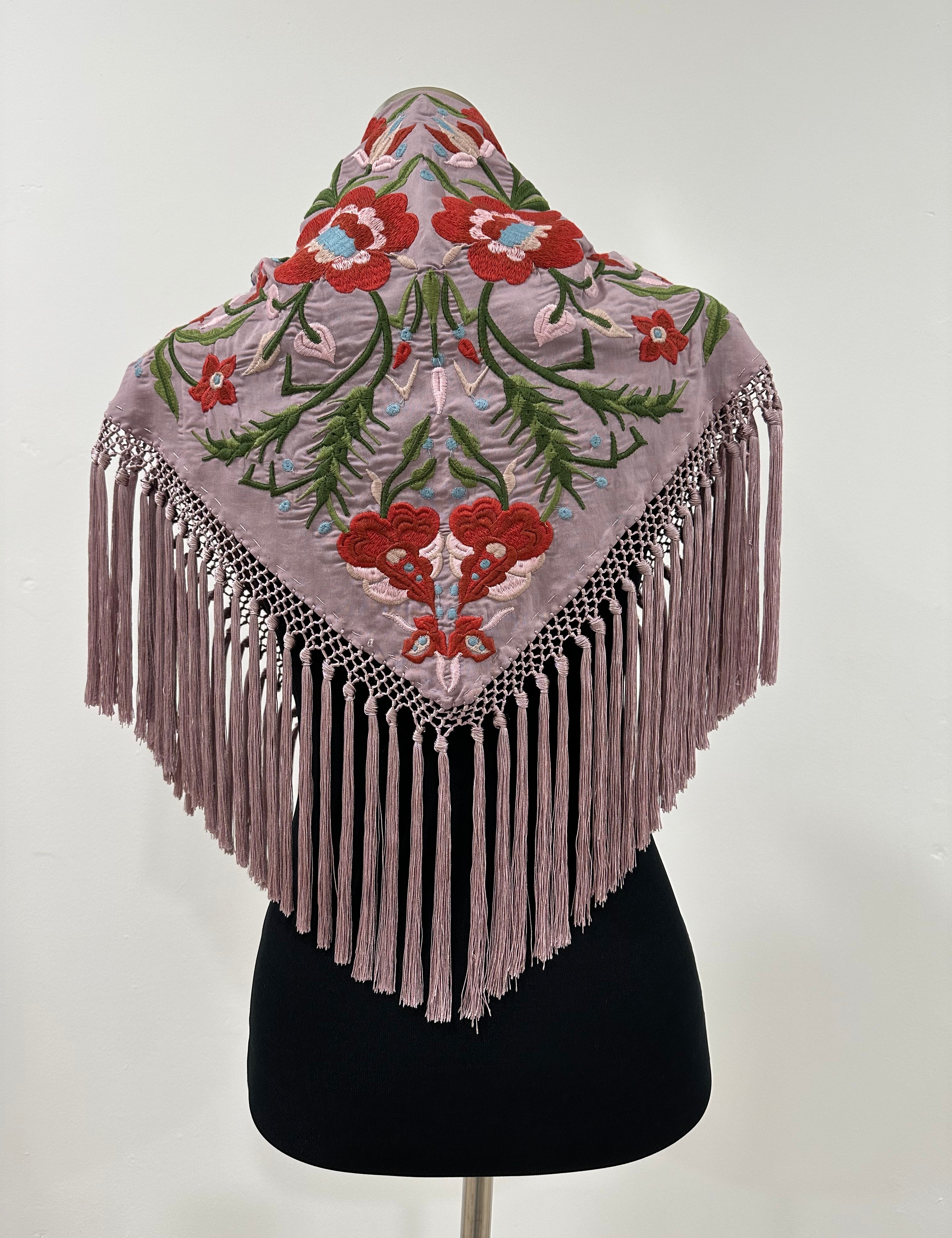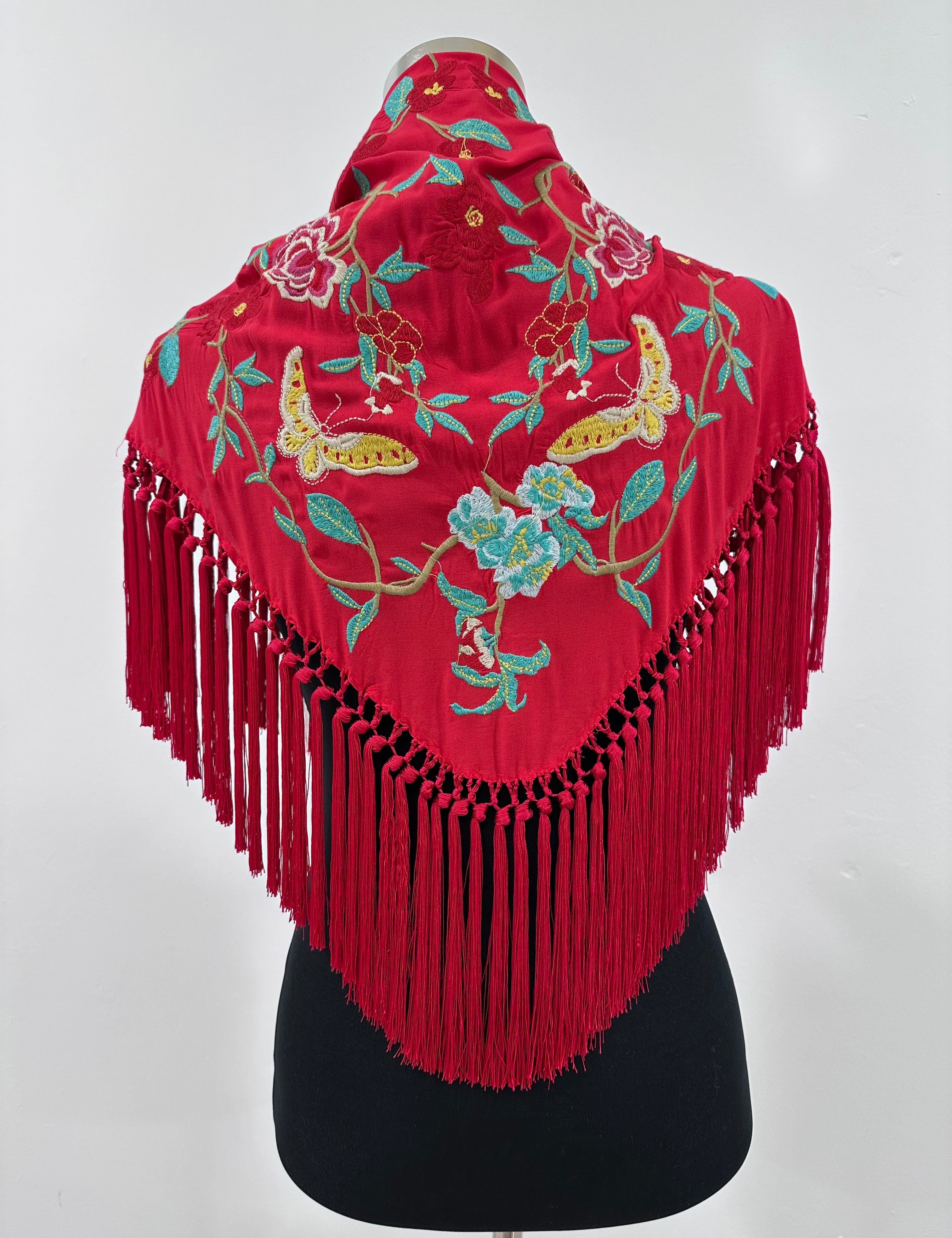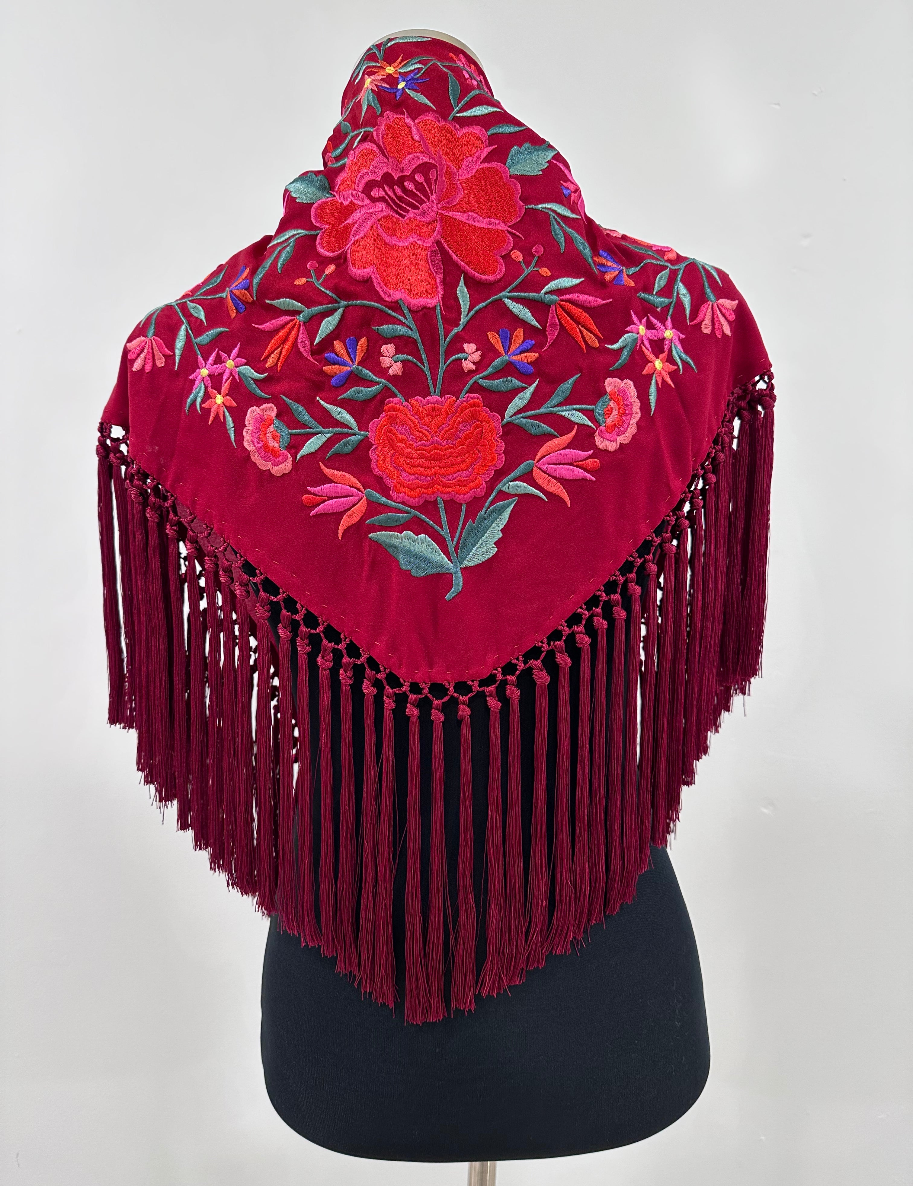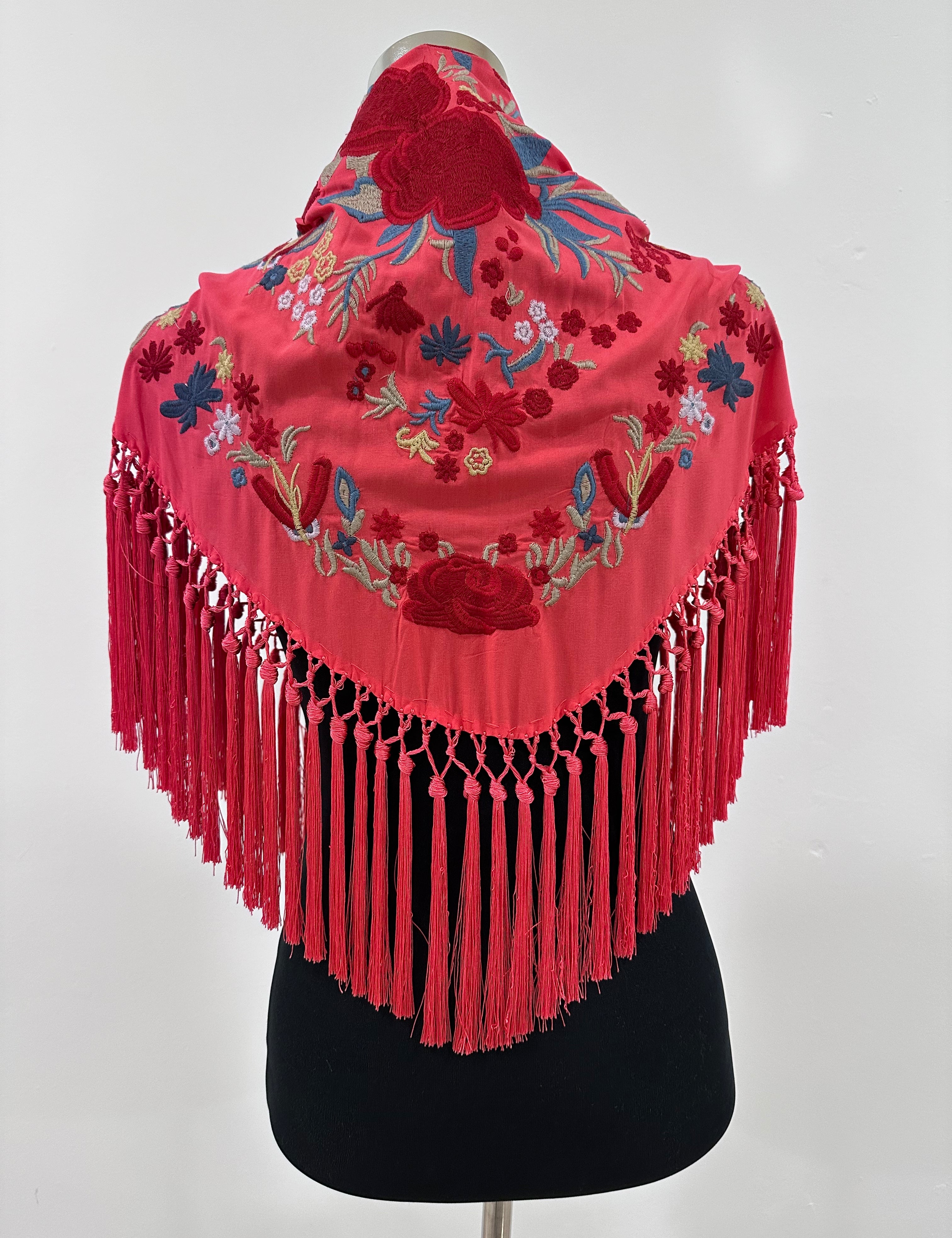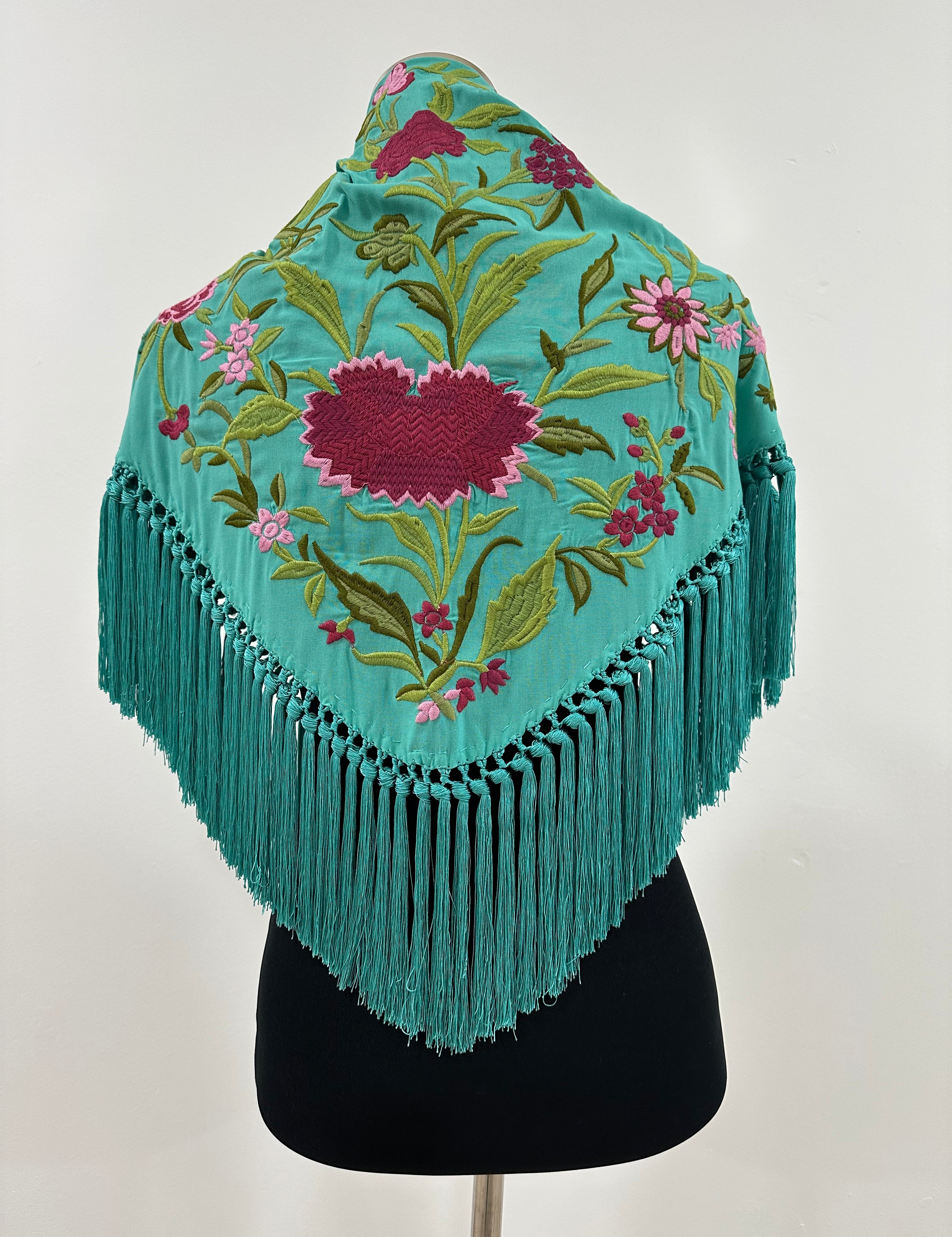 Mantón verde esmeralda claro bordado salmón Cantillana
