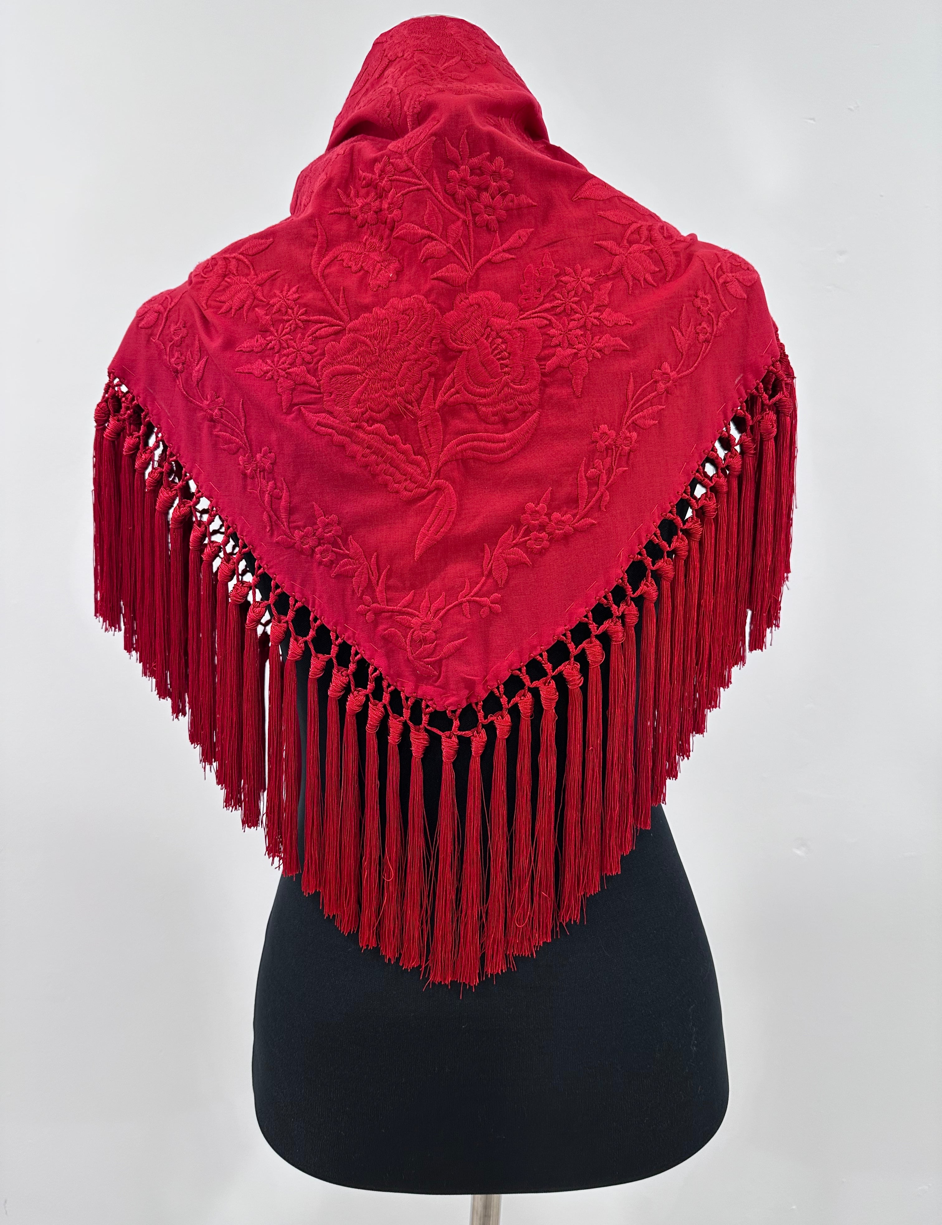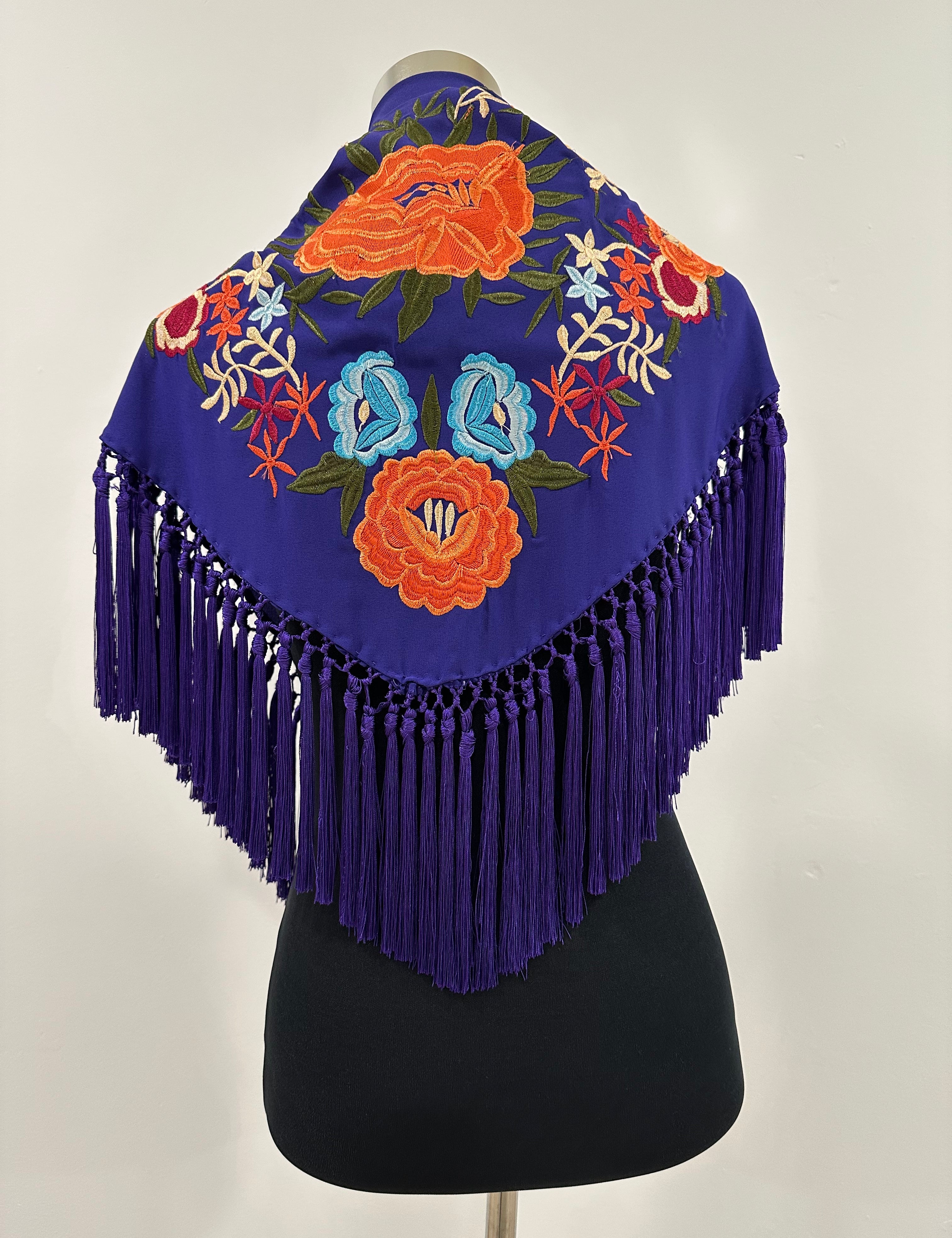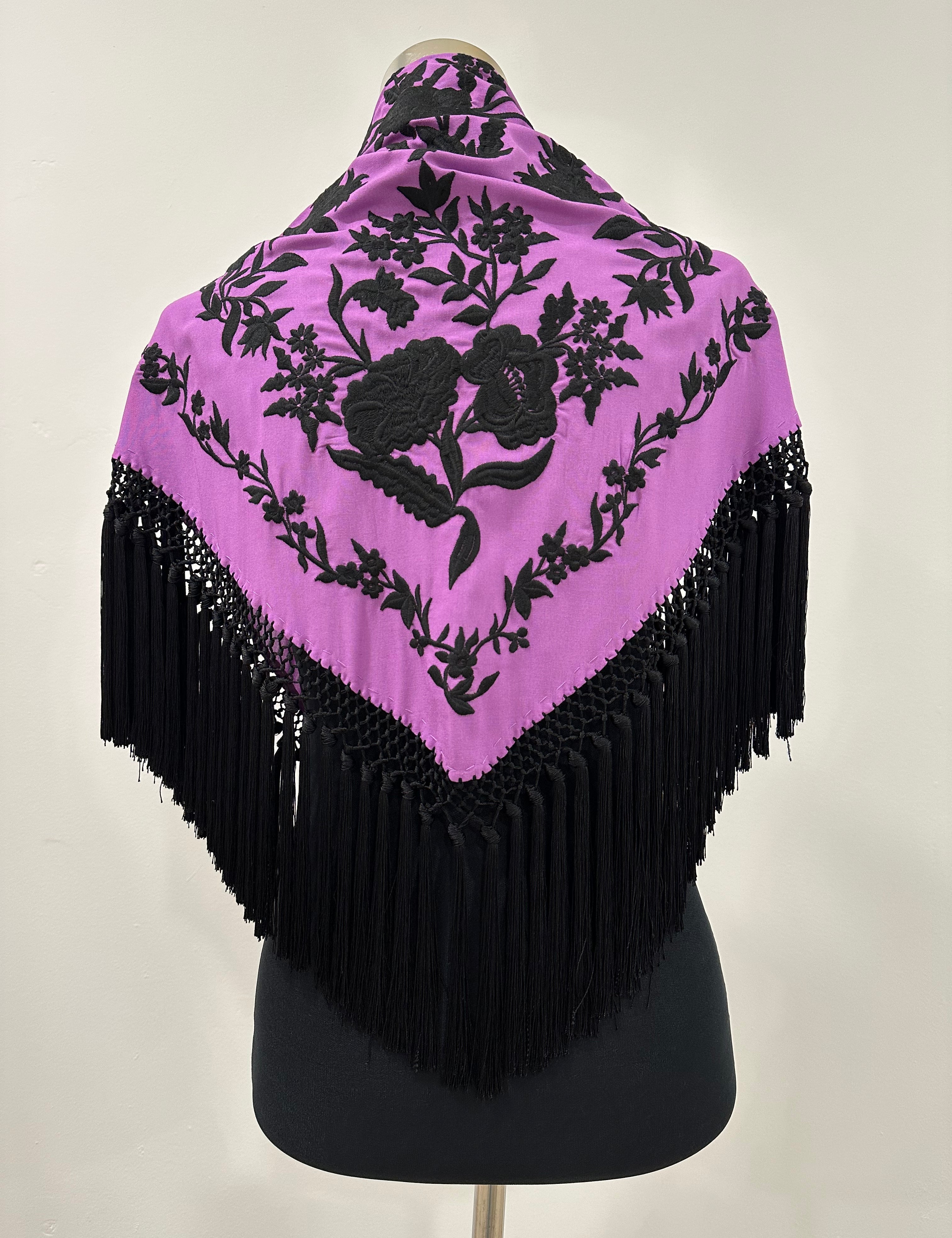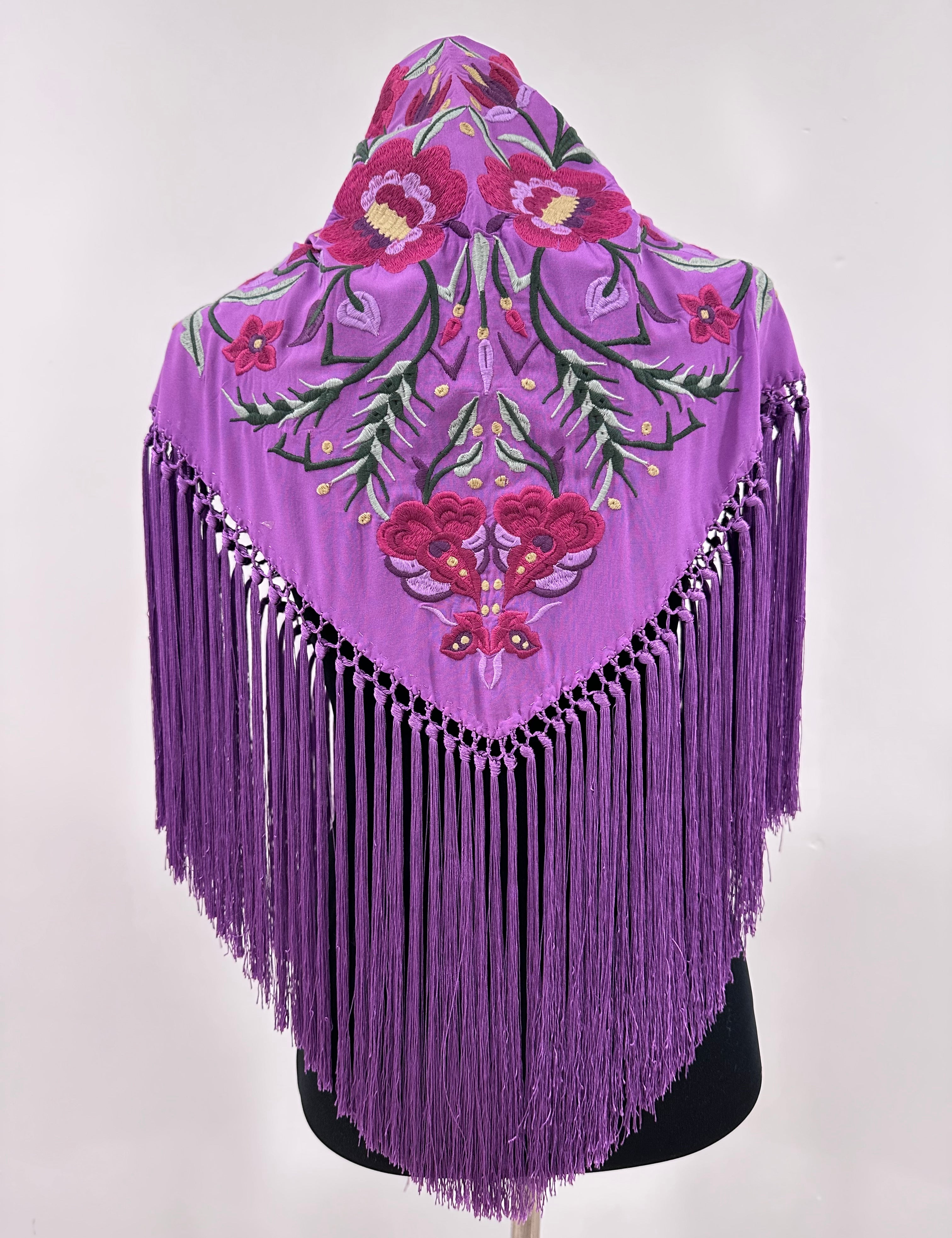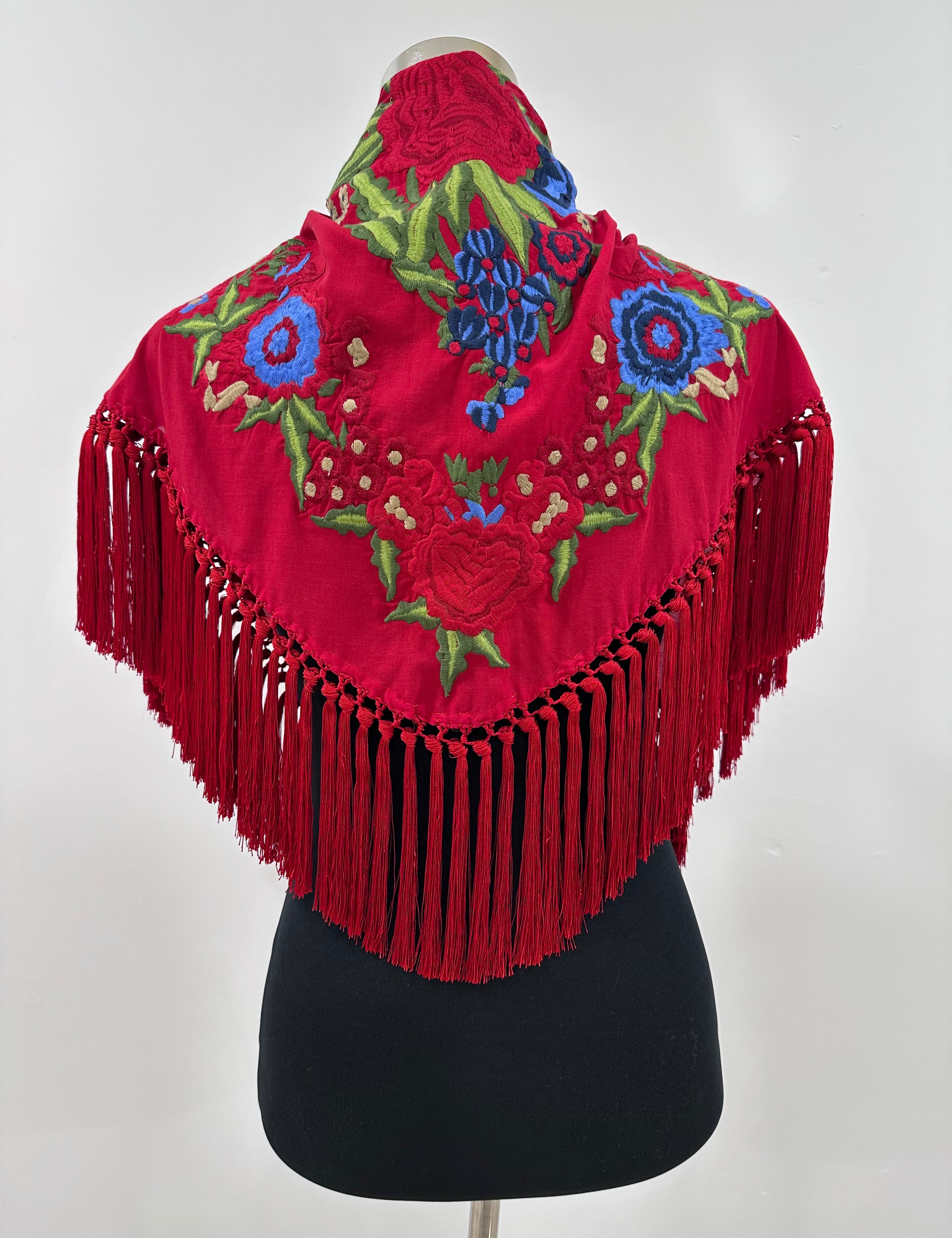 Mantón verde esmeralda claro bordado salmón Cantillana