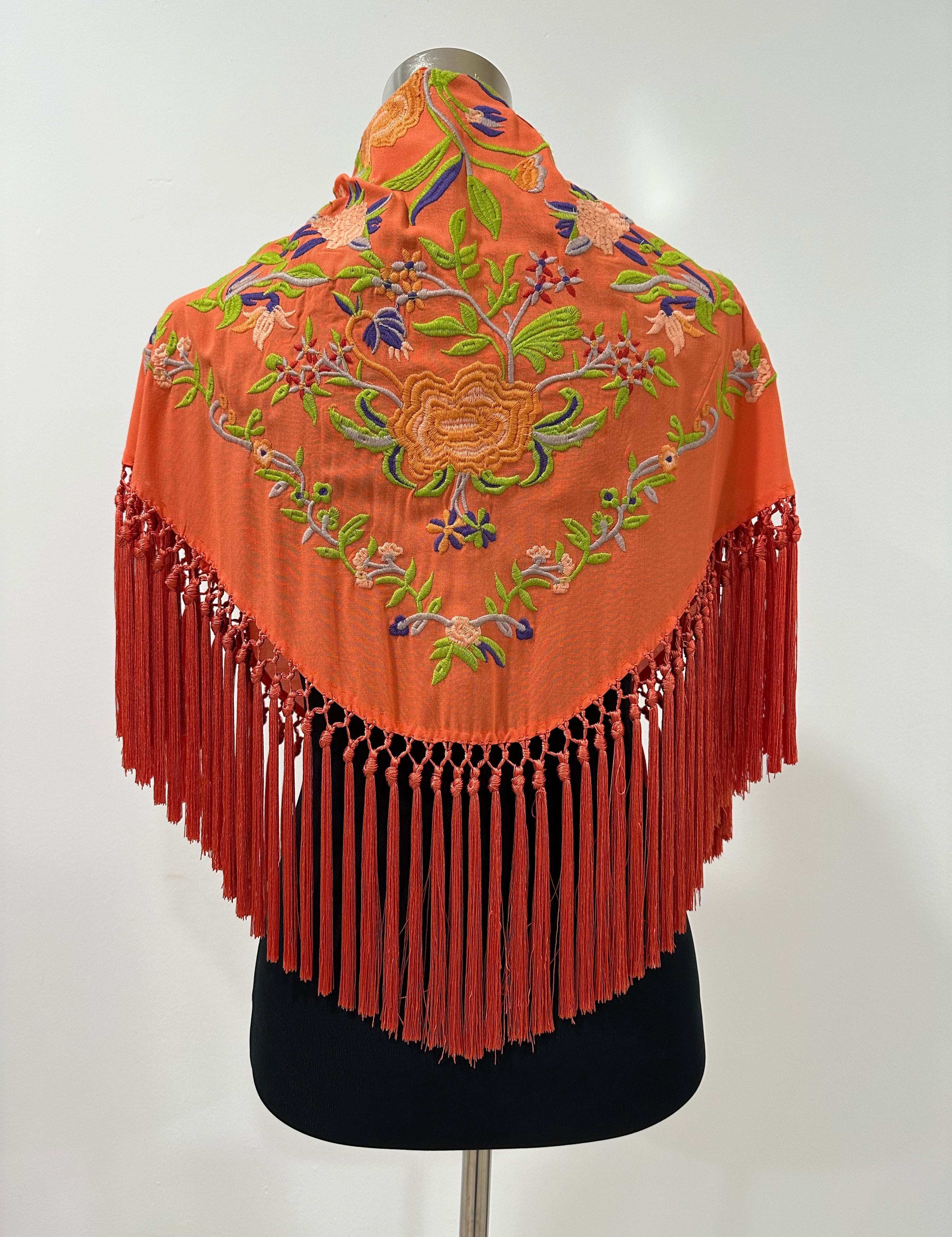 Mantón mandarina/coral bordado Cantillana