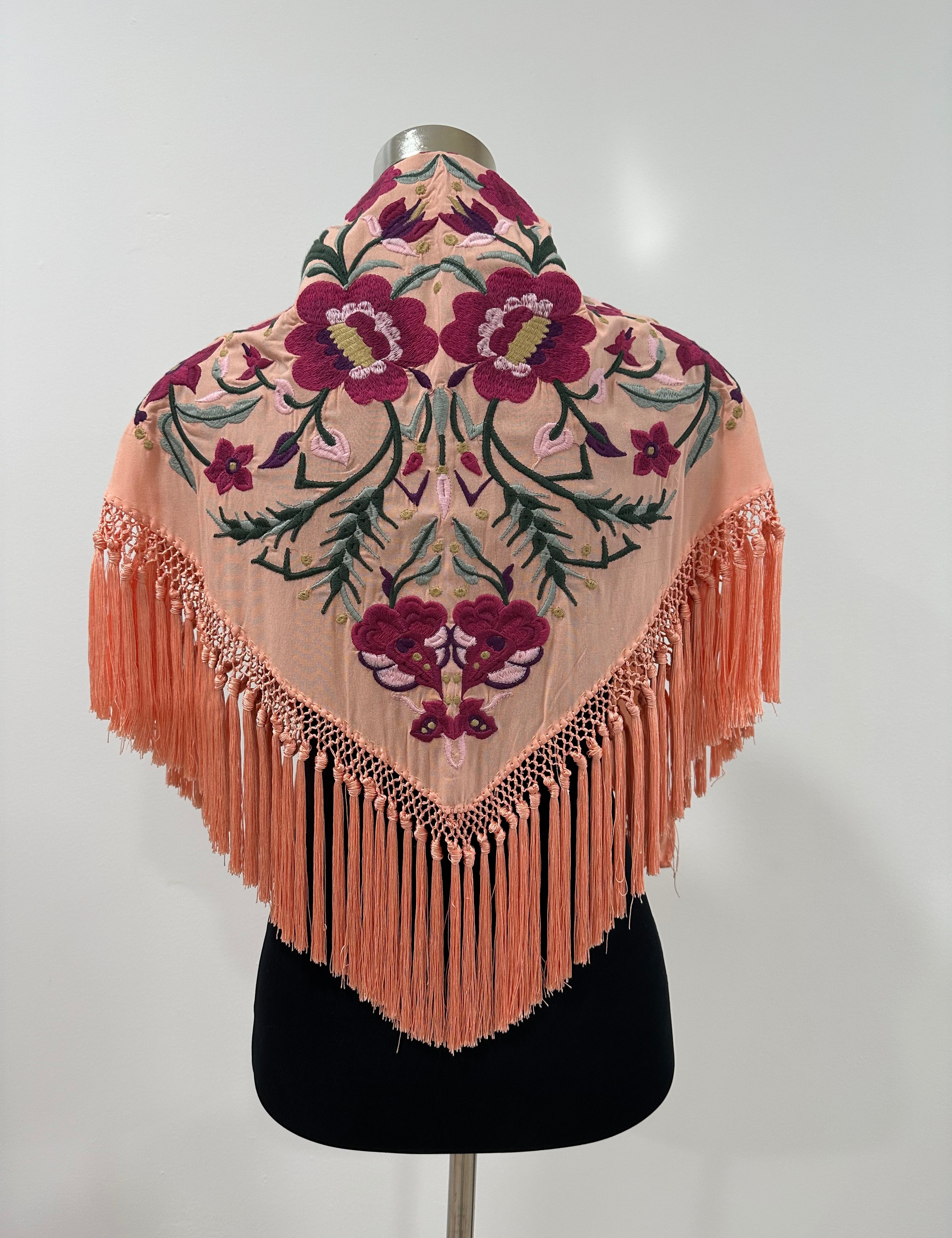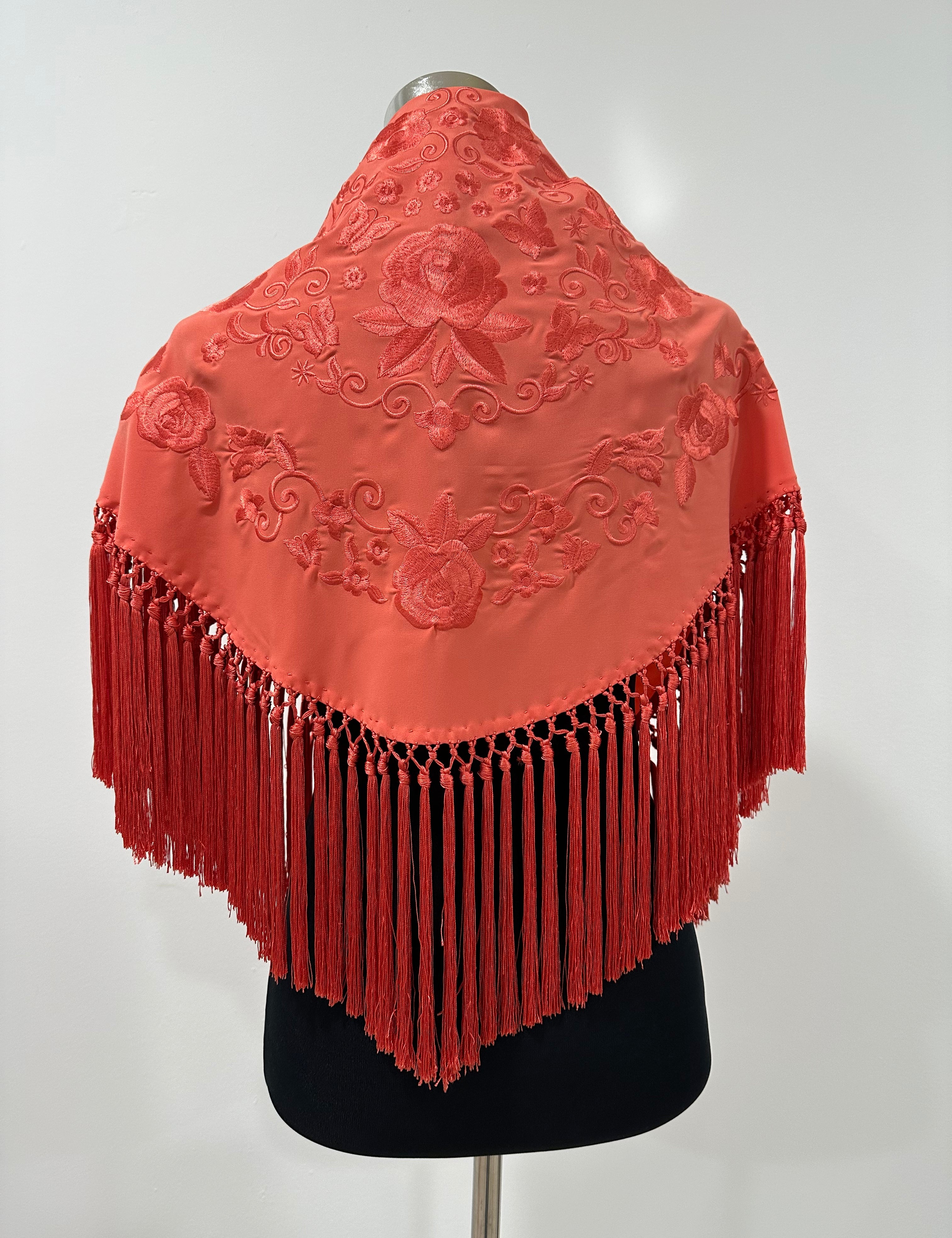 Mantón coral bordado al tono