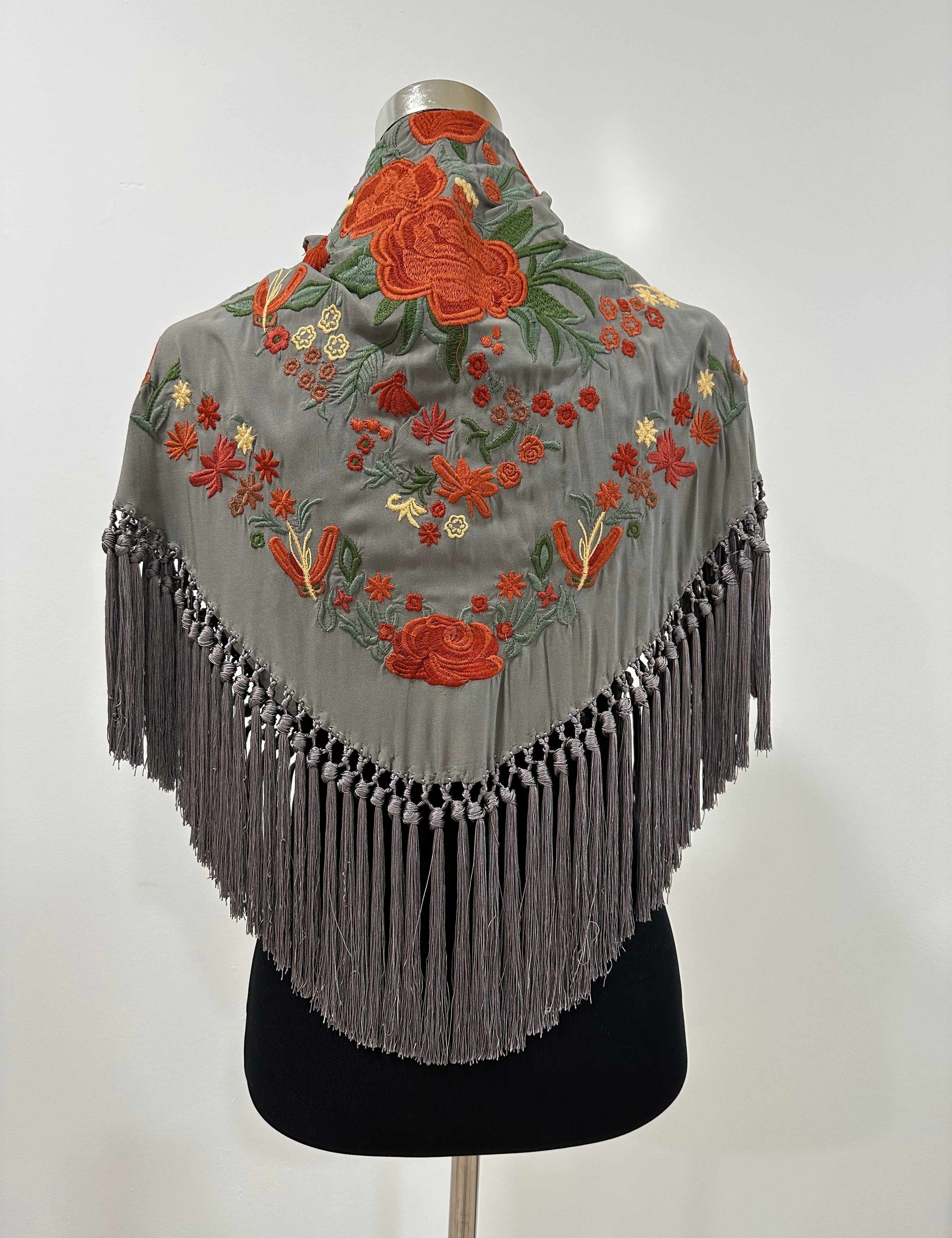 Mantón negro grisáceo bordado Cantillana