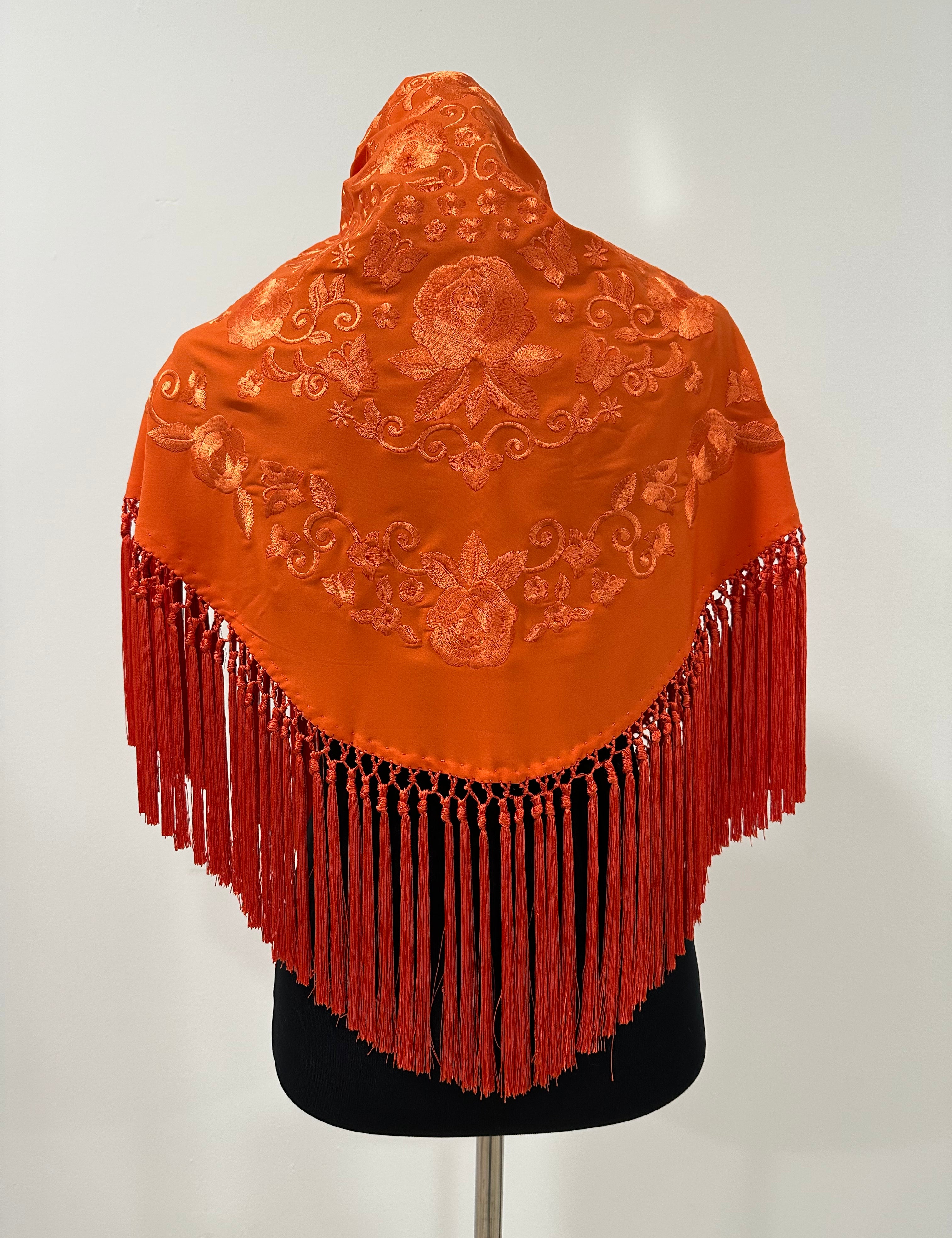 Mantón naranja bordado al tono