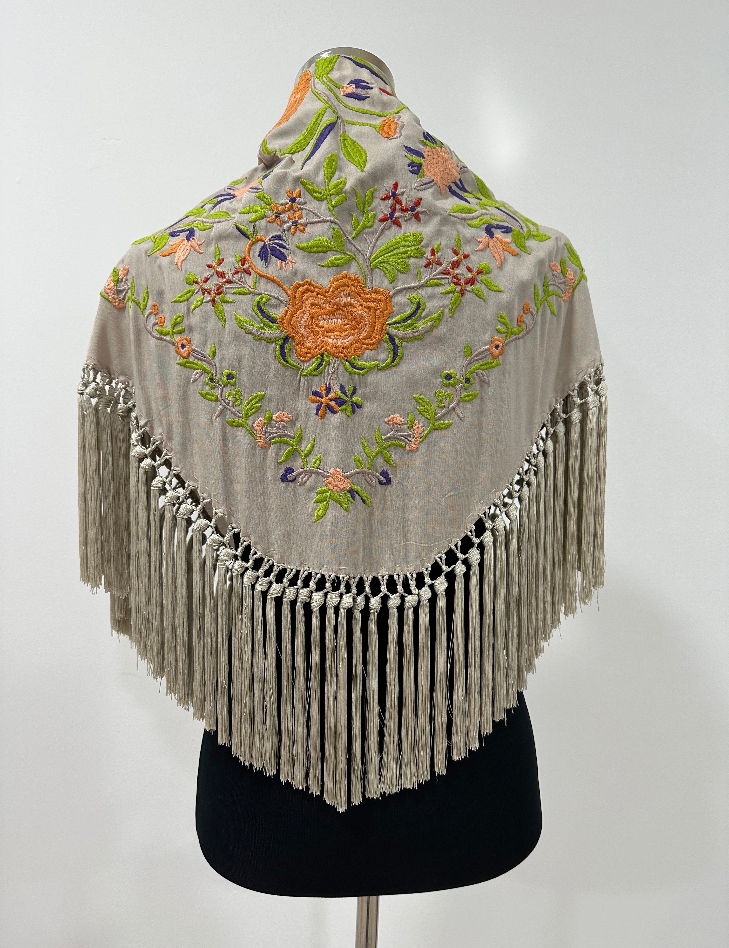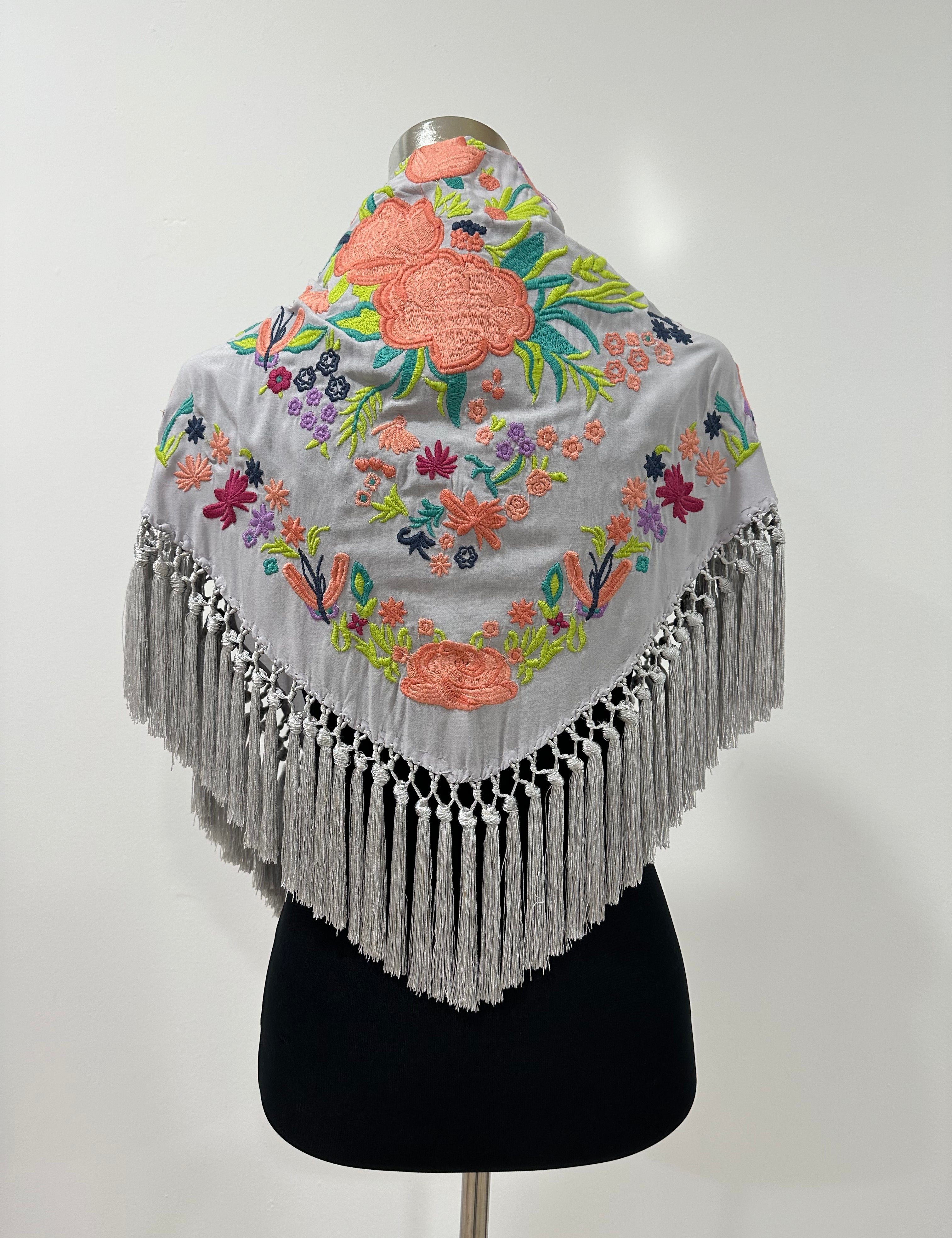 Mantón gris perla bordado Cantillana