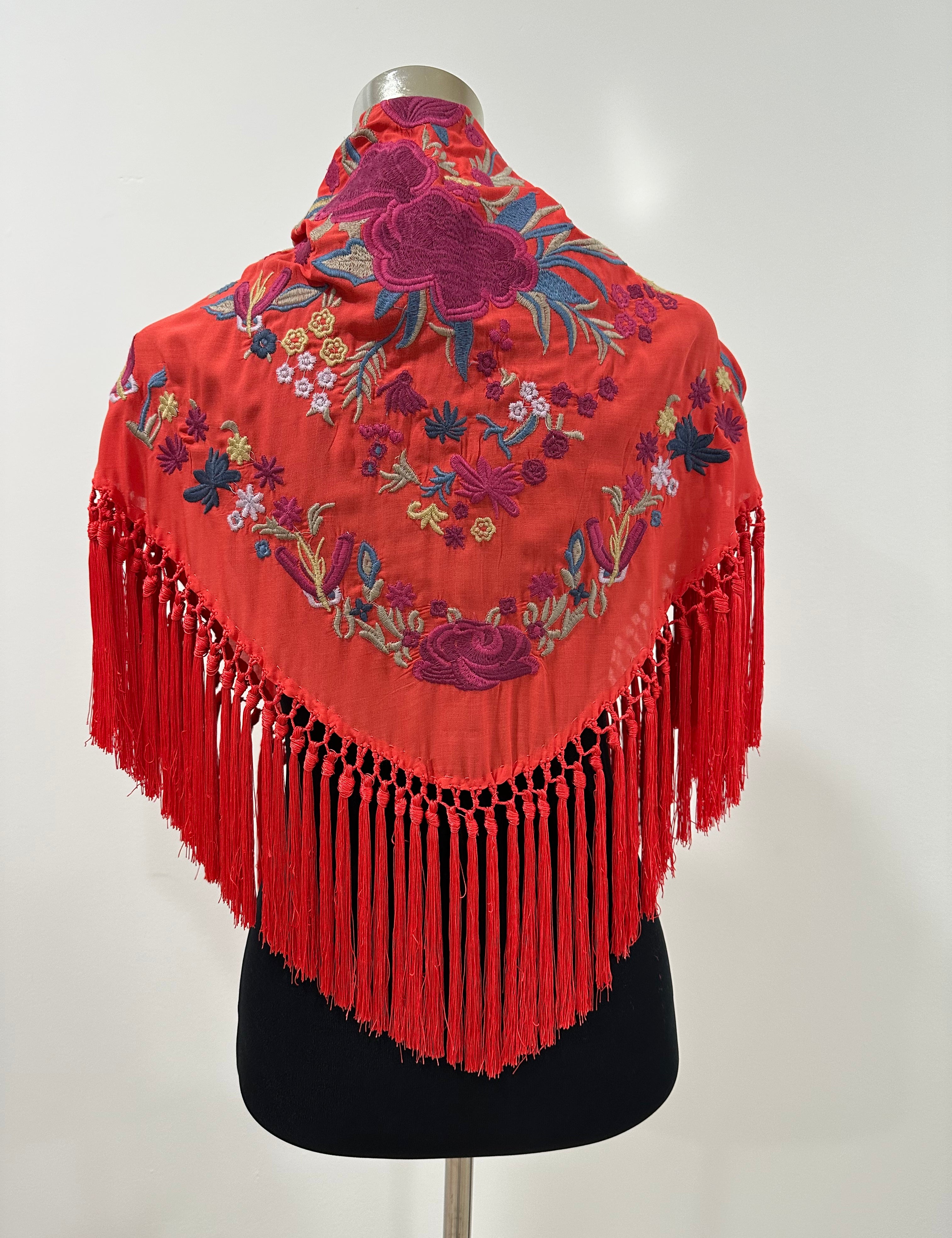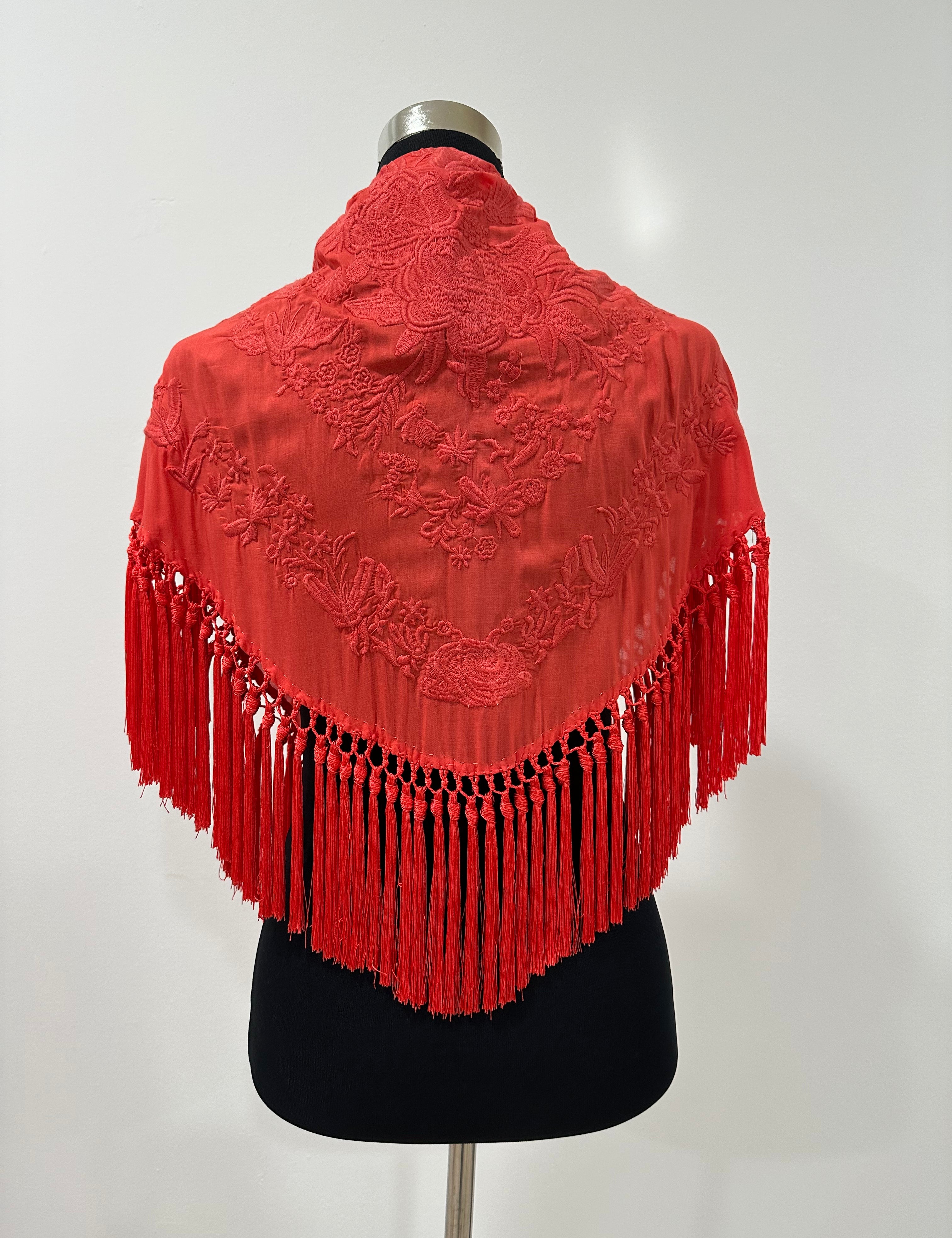 Mantón rojo coral al tono bordado Cantillana