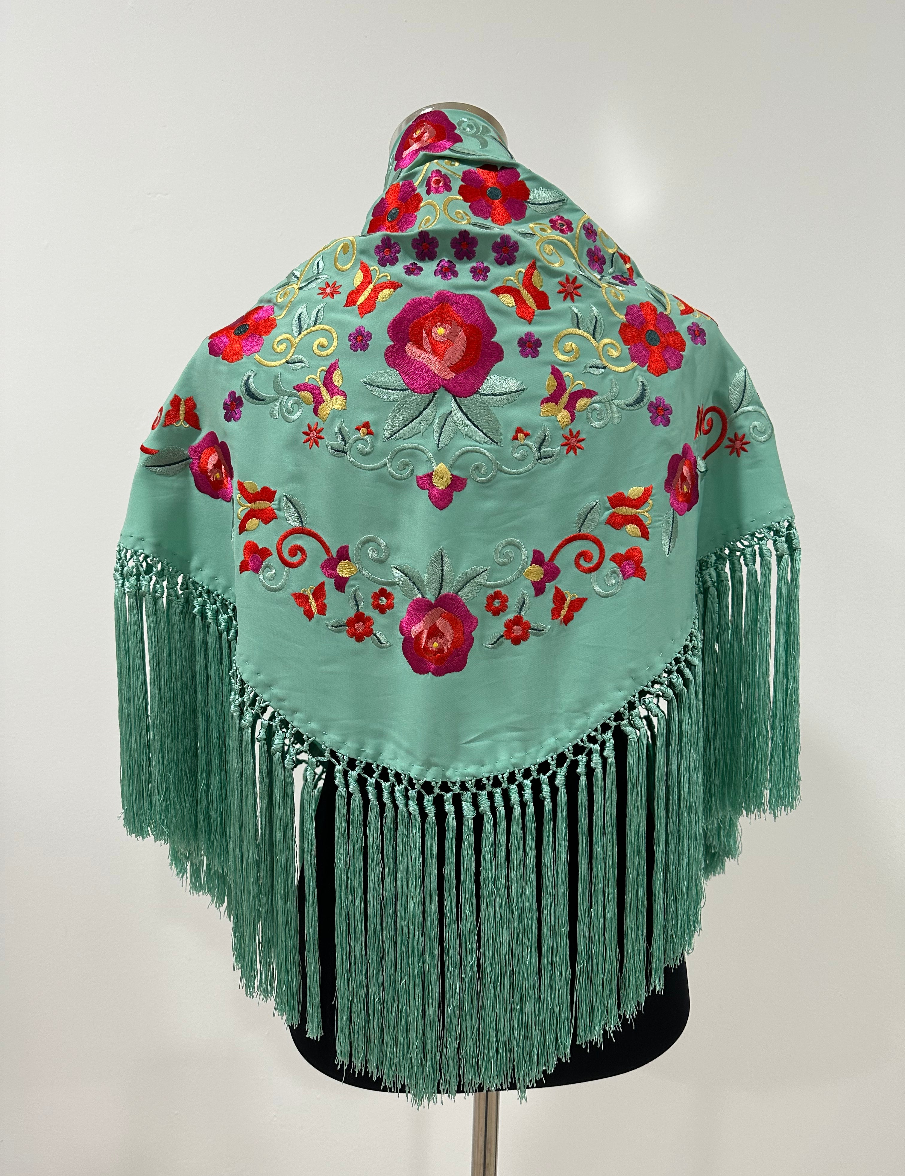 Mantón verde menta bordado