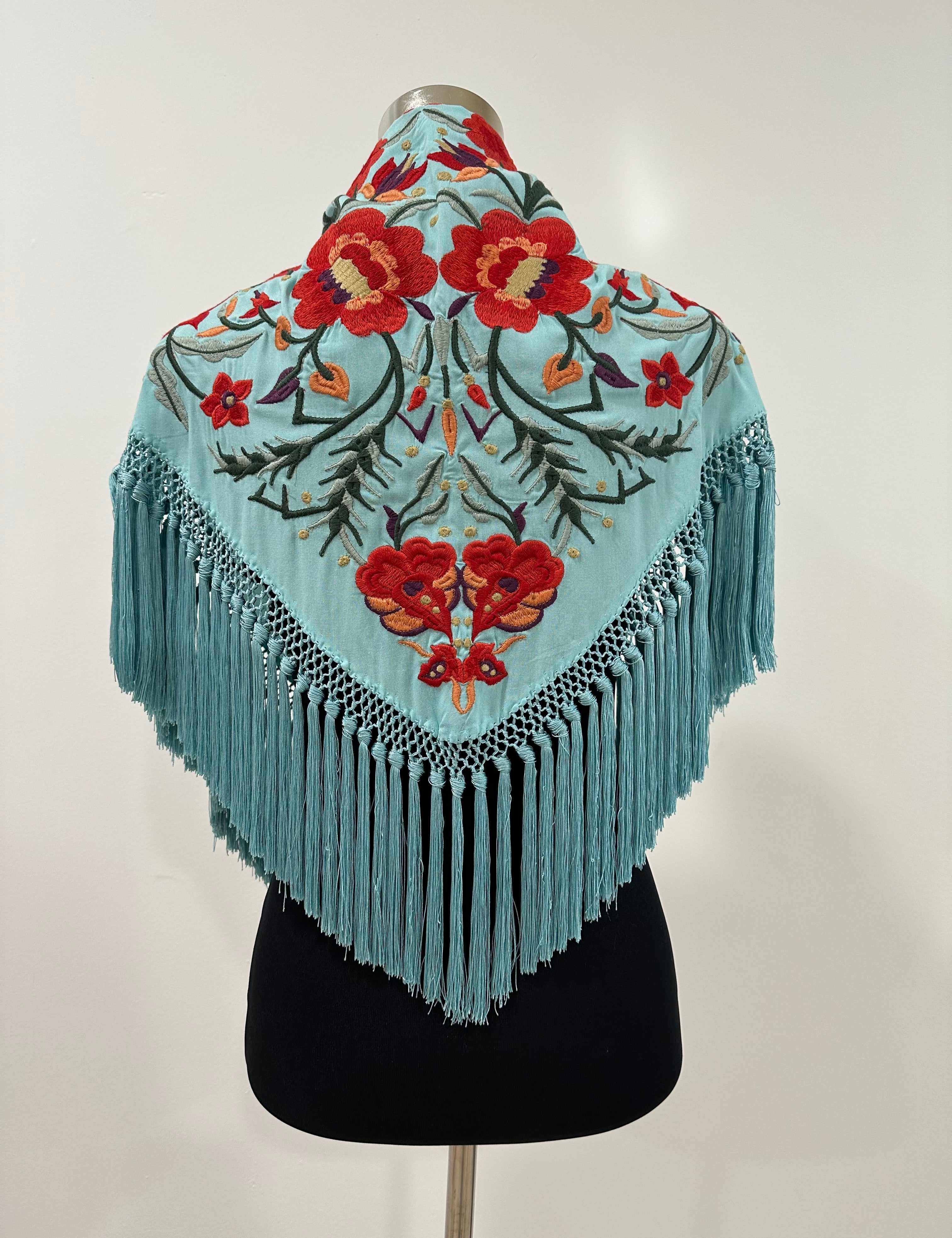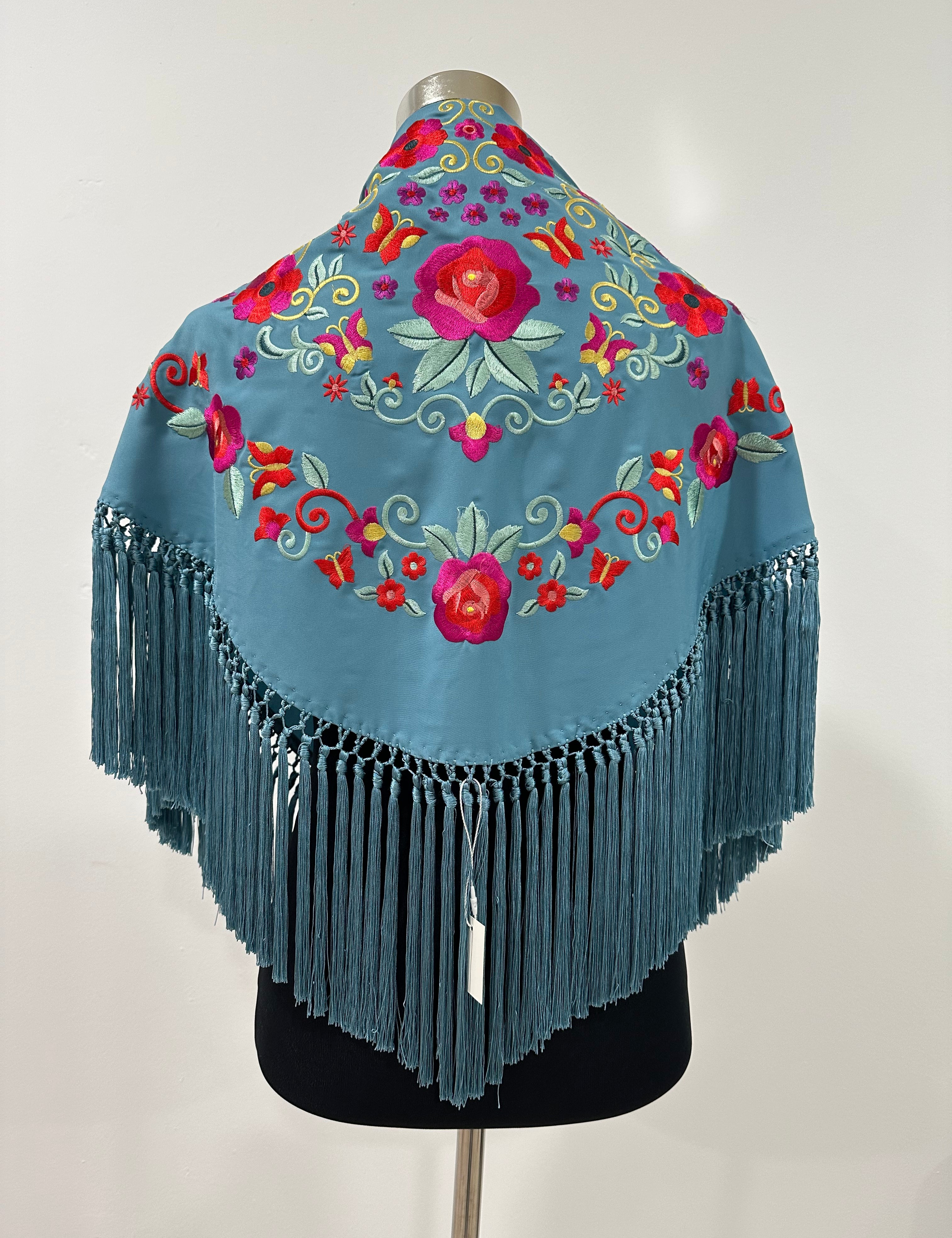 Mantón aguamarina bordado Cantillana