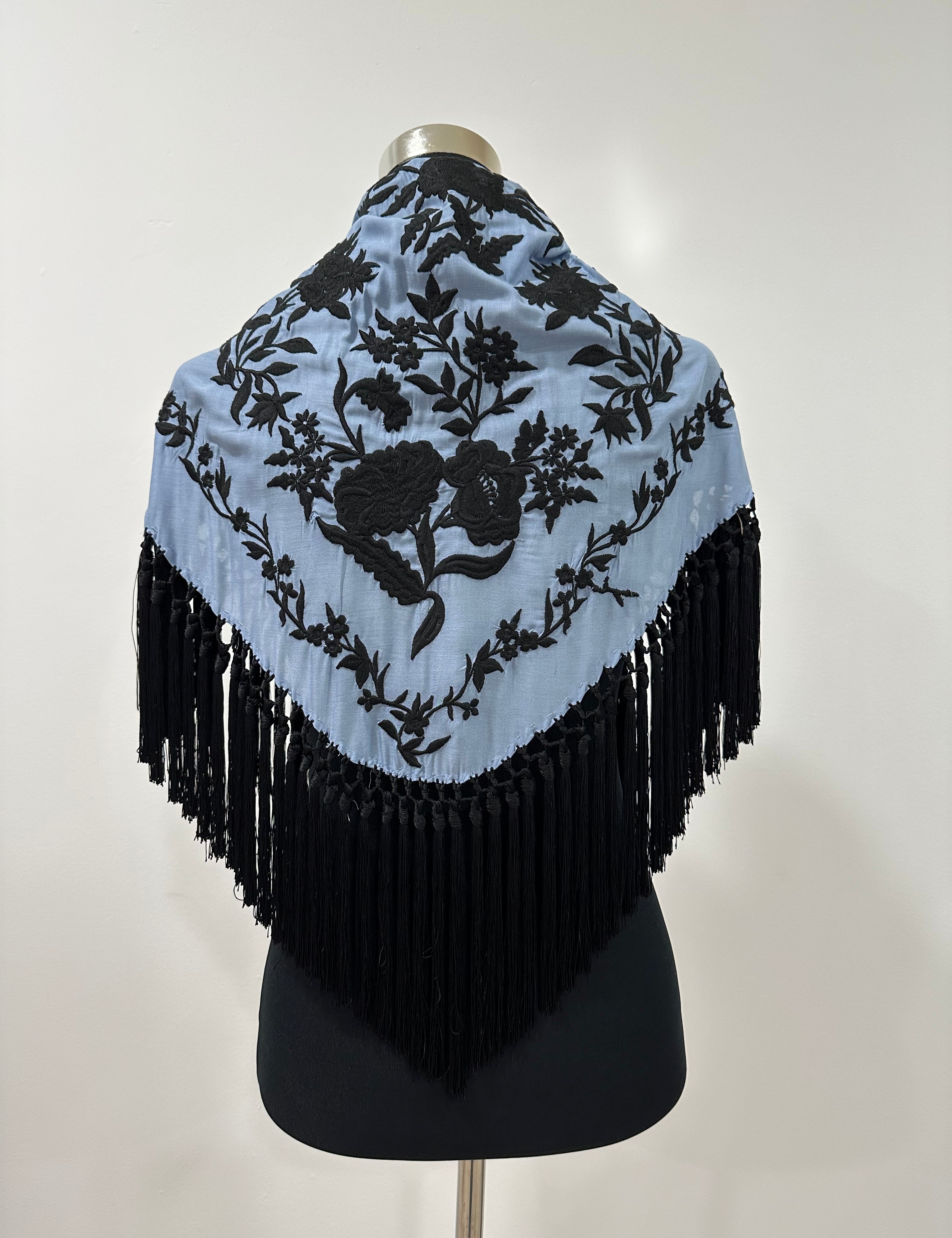 Mantón azul pato bordado