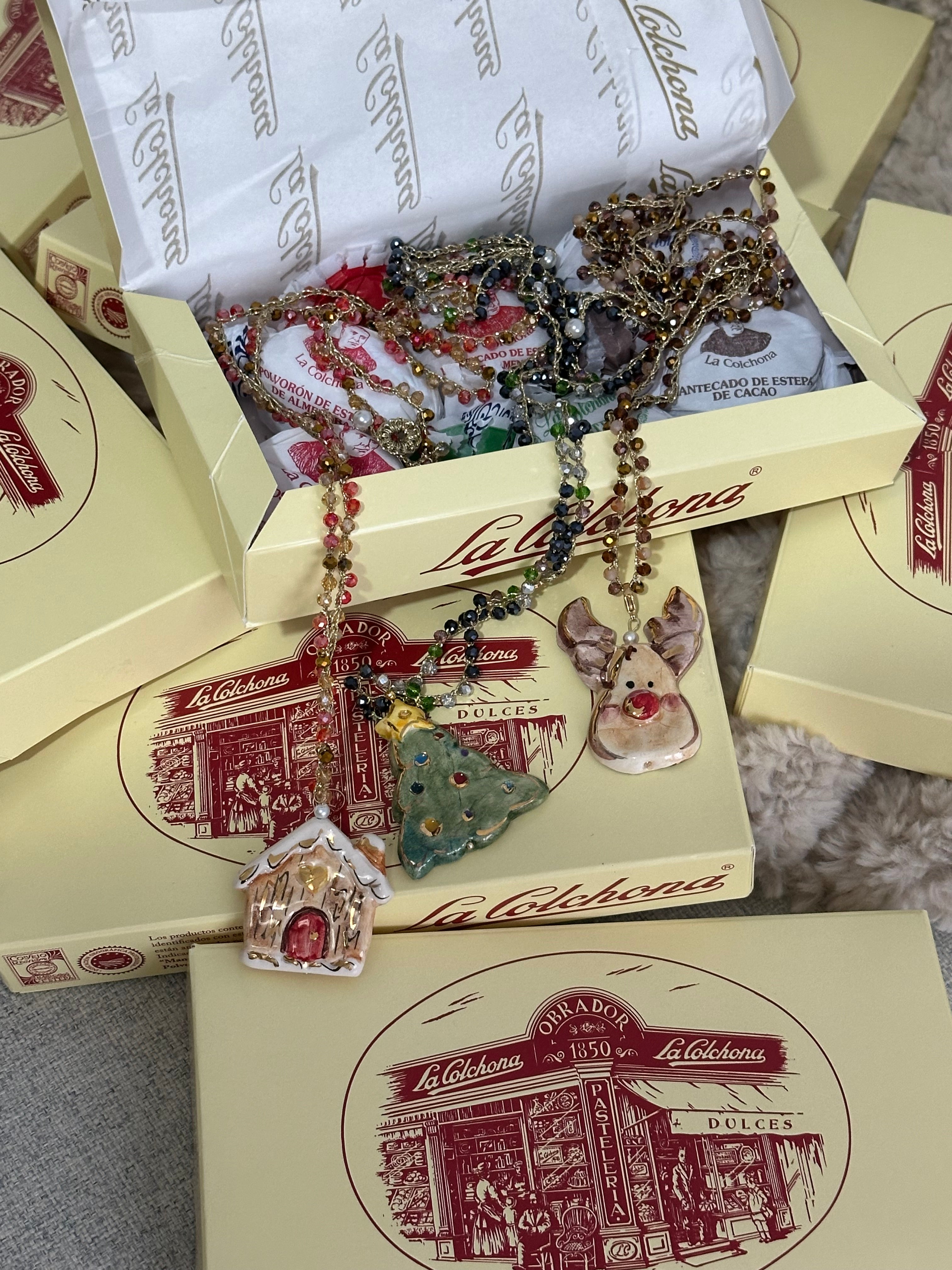 Cada pieza está hecha a mano con materiales seleccionados con cariño: perlas naturales, cuentas de vidrio, cerámica pintada, cristales y acabados dorados de alta calidad. Siempre buscamos que sean resistentes, cómodos y con mucho brillo.
