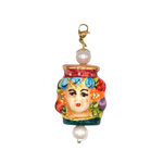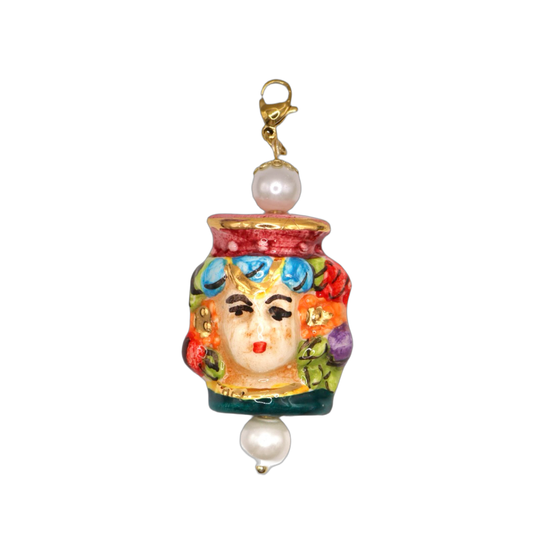 Charm de cerámica hecho y pintado a mano en Sicilia, mide 5 cm y el cierre es de acero inoxidable. Ideal para colocar en tu cadena favorita. No pesa nada.