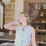 El largo del collar es aproximadamente de 95 cm para que pueda usarlo tanto largo con jerséis como corto de tres vueltas con tops.