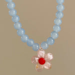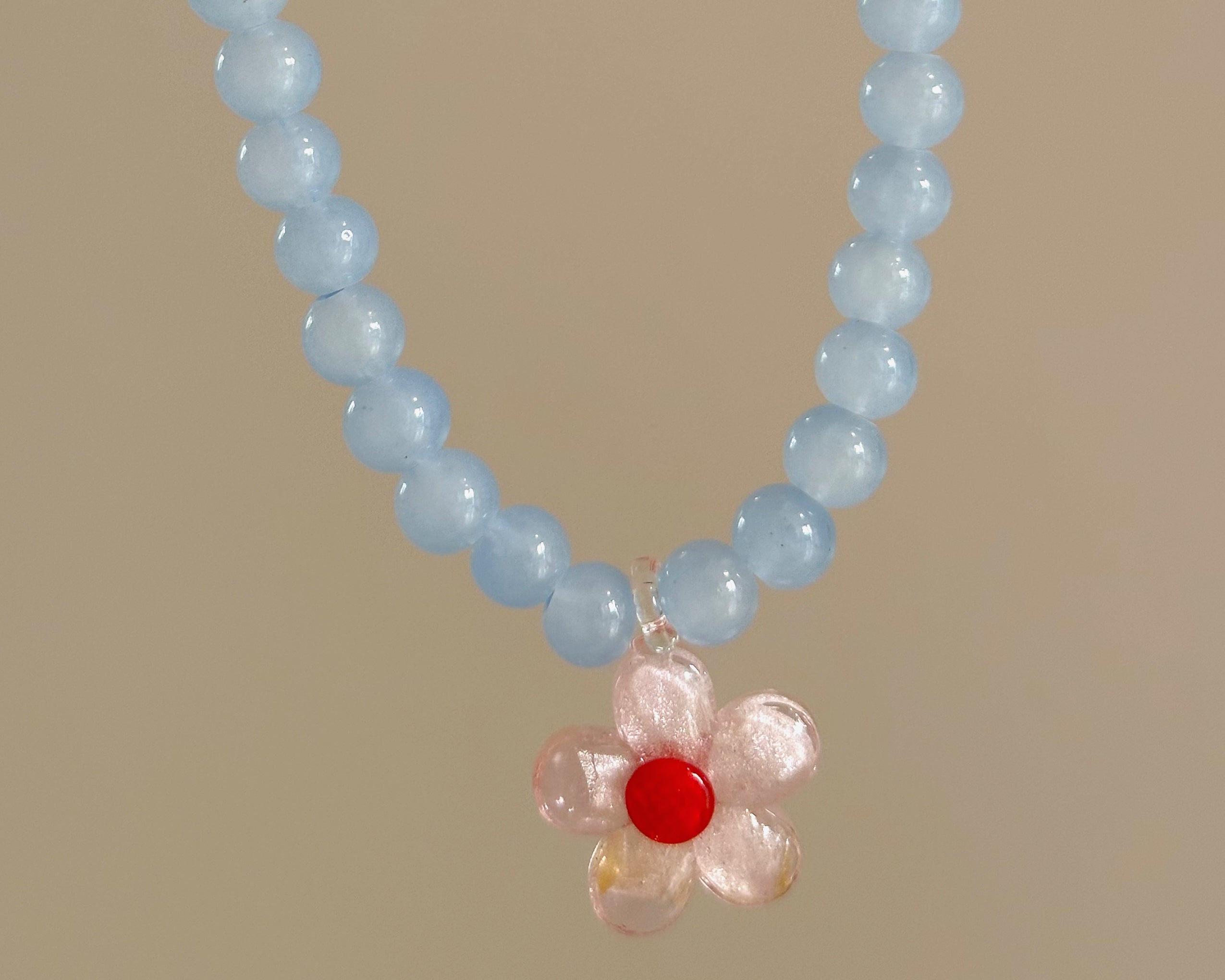 ¡Dale vida a tu look de verano con este collar, hecho a mano súper divertido! Este collar azul, lleno de alegría, está compuesto por piezas de cristal y cuenta con una encantadora flor rosa y roja de cristal soplado en el centro que te hará destacar. Diseñado para ajustarse justo al cuello, este collar es ideal para tus aventuras de las niegas, fiestas en la playa o salidas con amigos. Además, cuenta con una cadena alargador de 7 cm para que puedas ajustarlo a la medida perfecta.