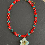 Collar de cristales y cerámica. Mide 40 cm y cuenta con una cadena ajustable de acero inoxidable de 5 cm.
