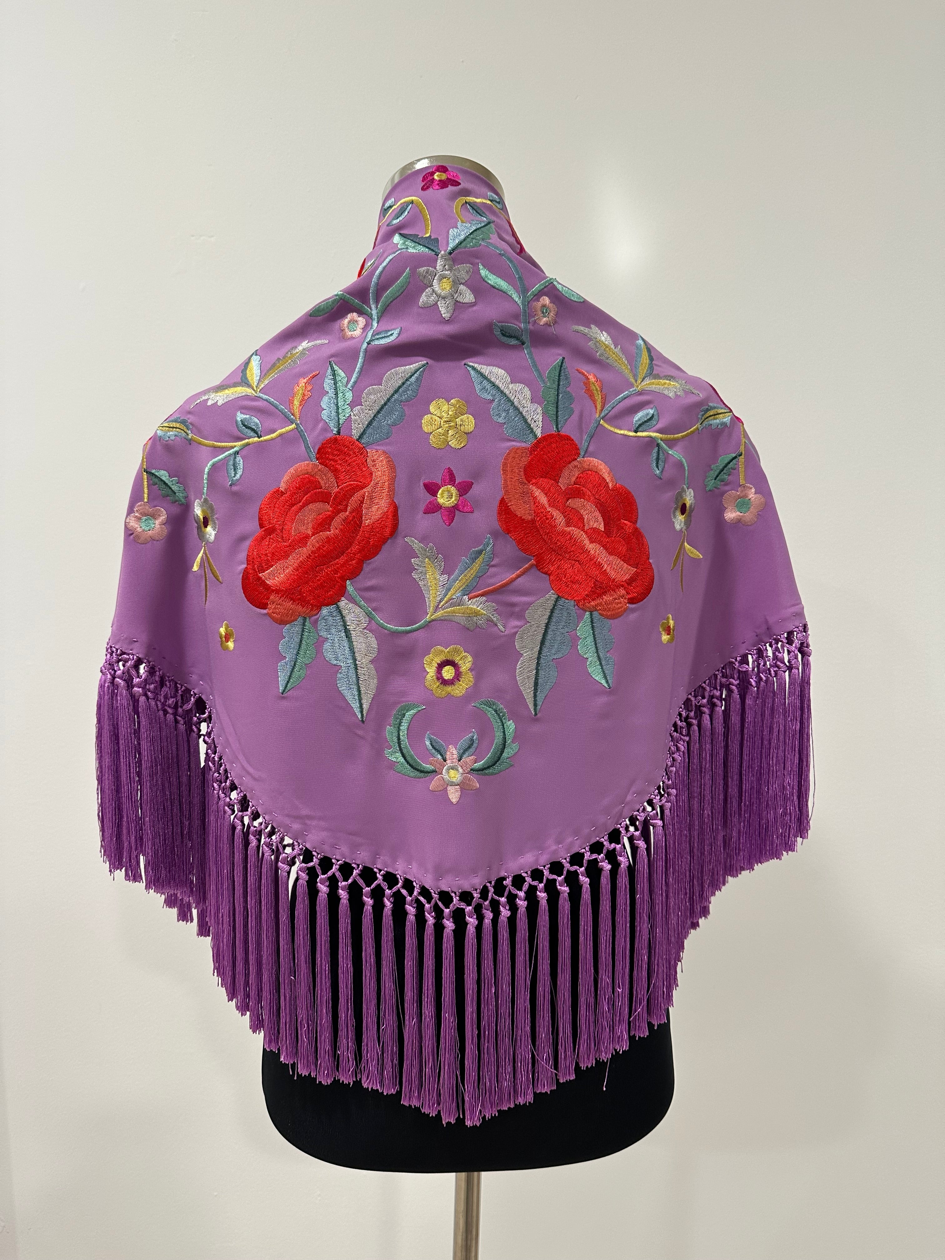 Mantón malva bordado