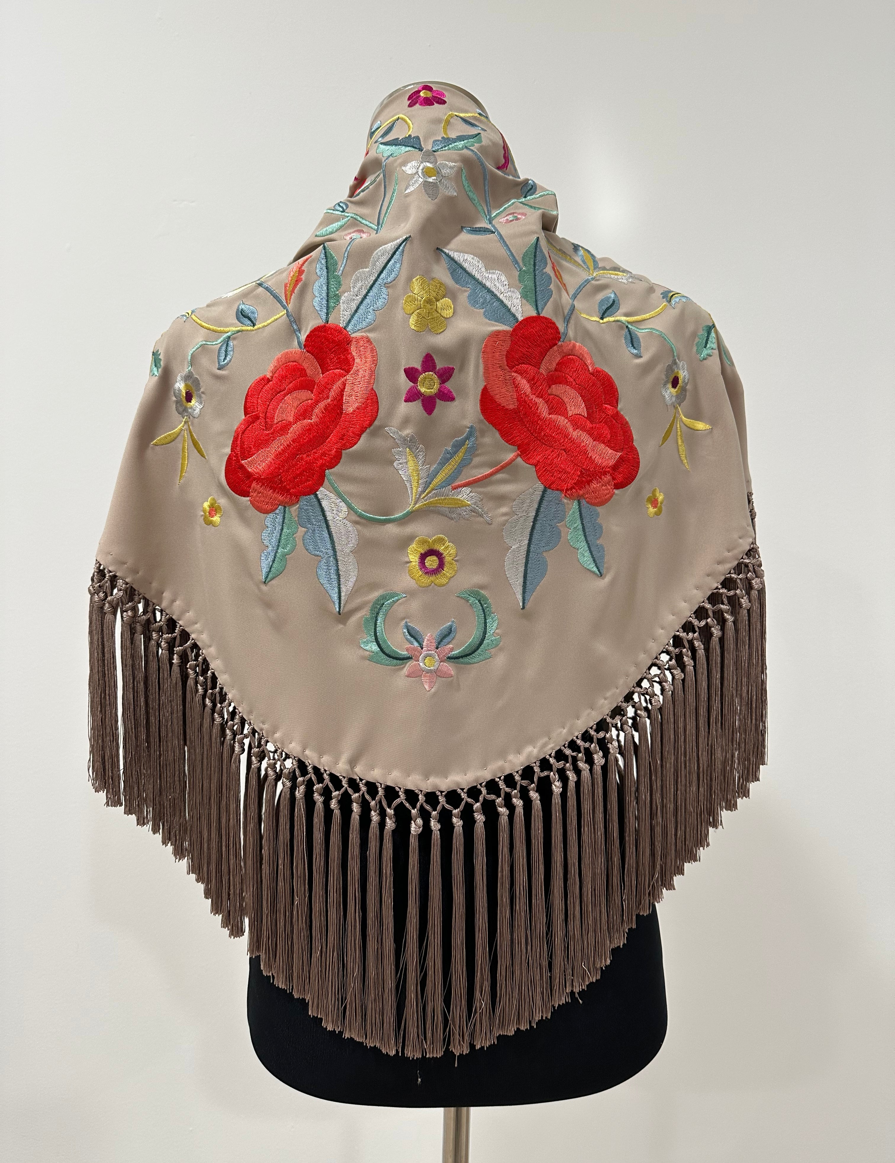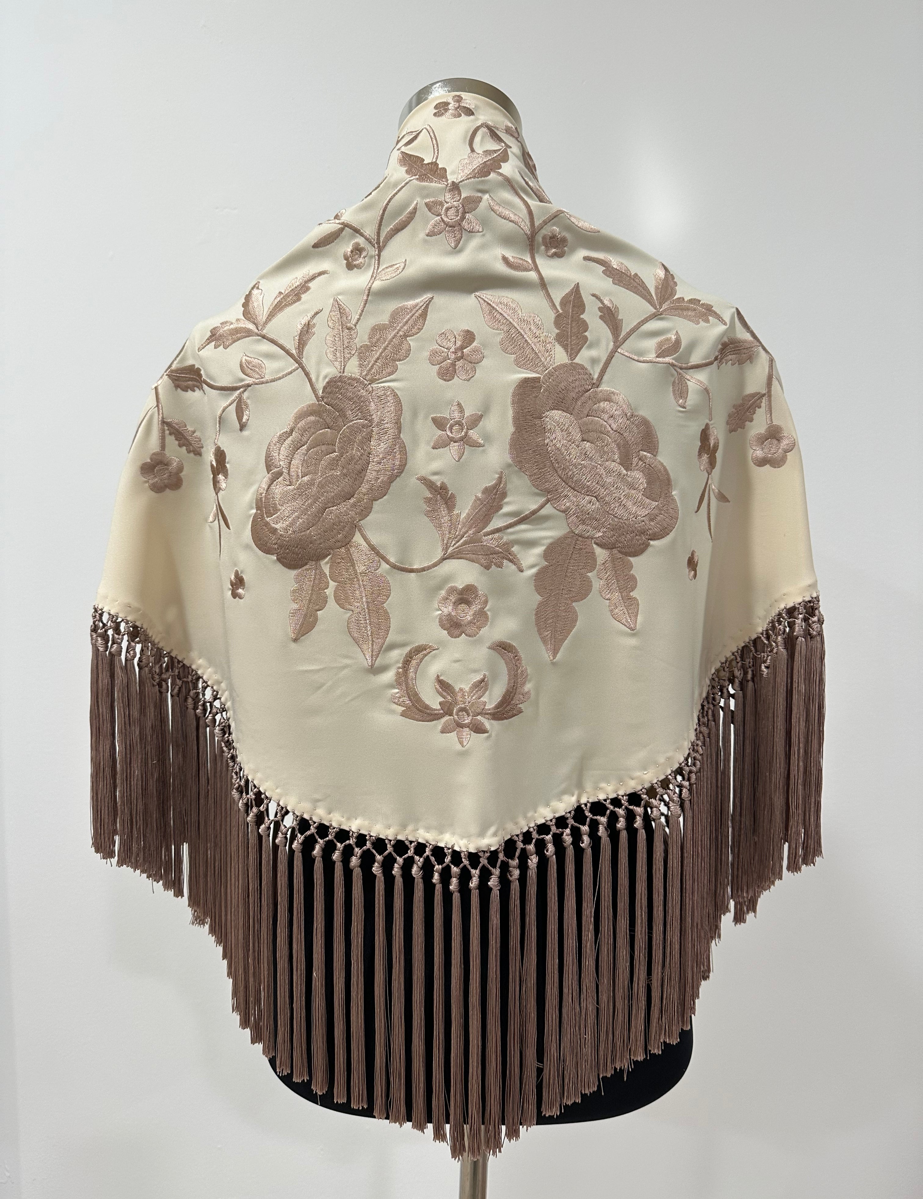 Mantón marfil bordado topo