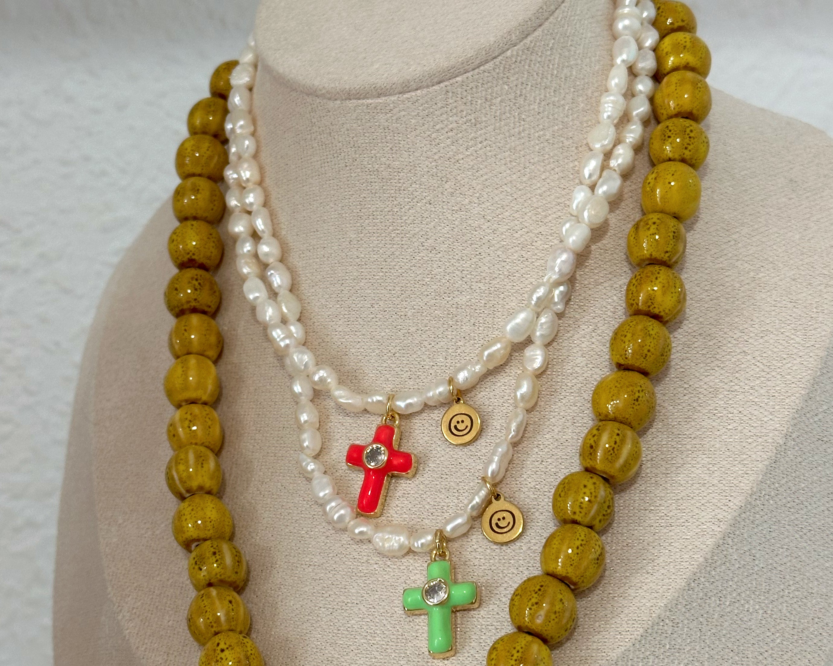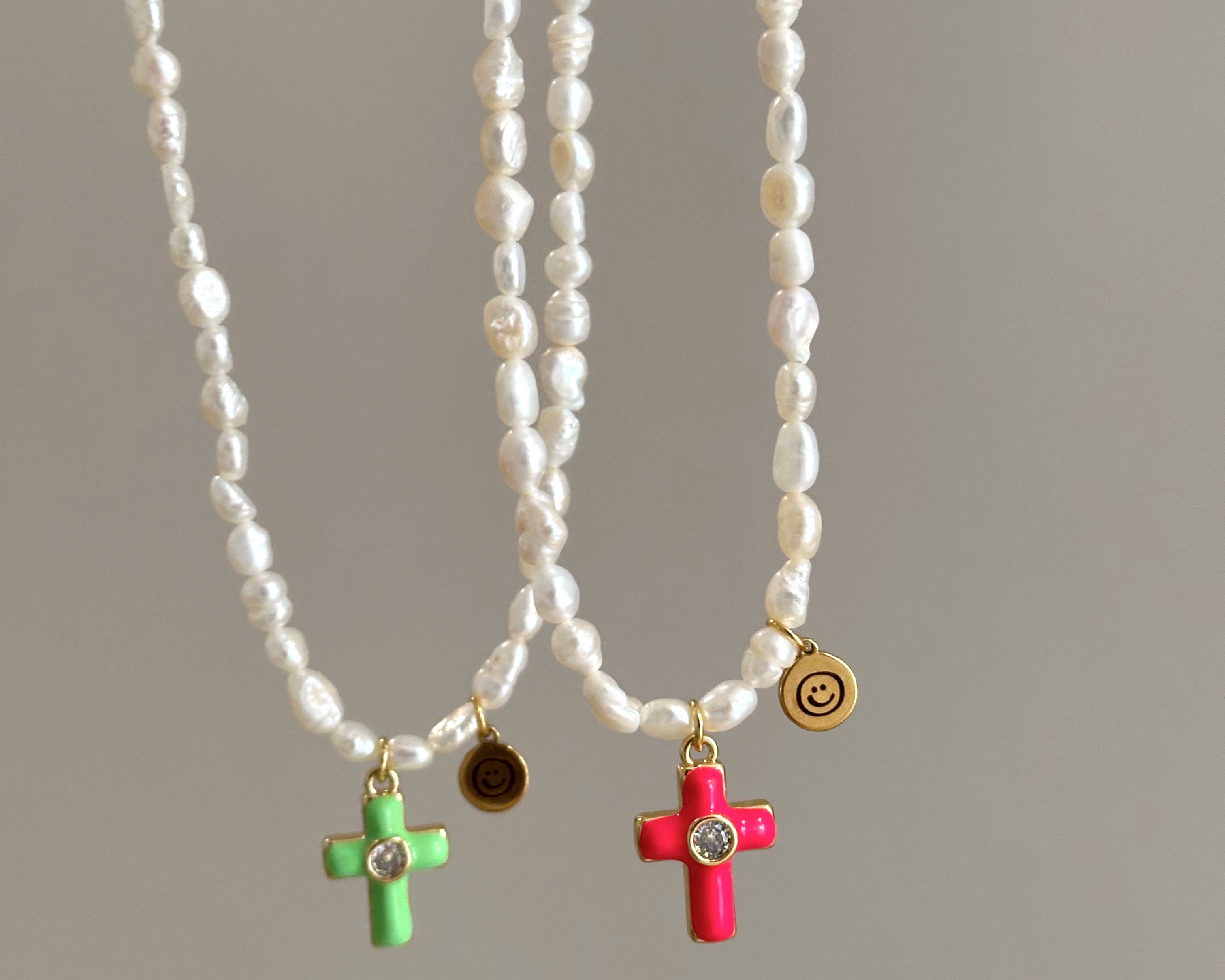 Collar perlas de río y cruz fosforescente