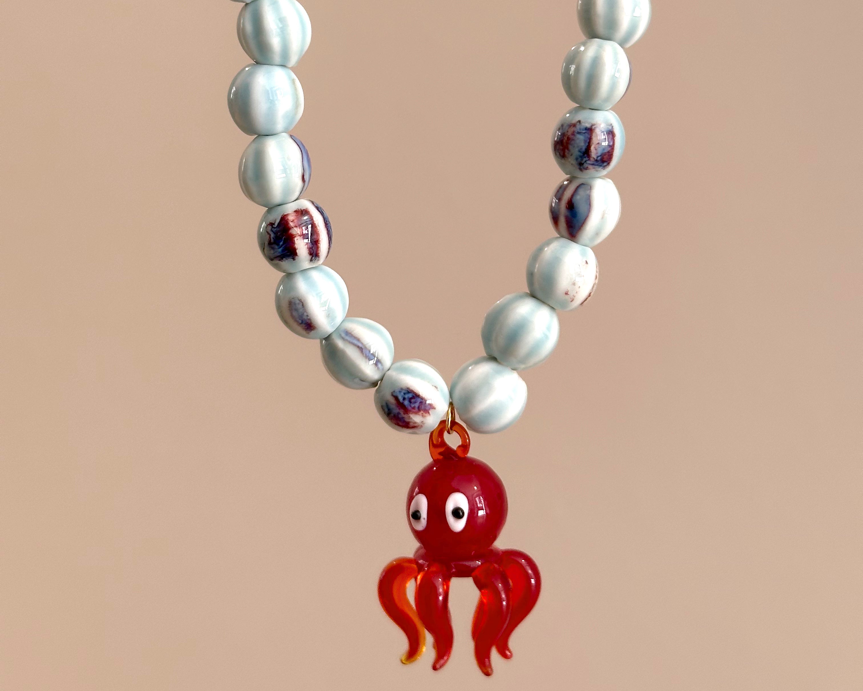 Collar pulpo azul y rojo