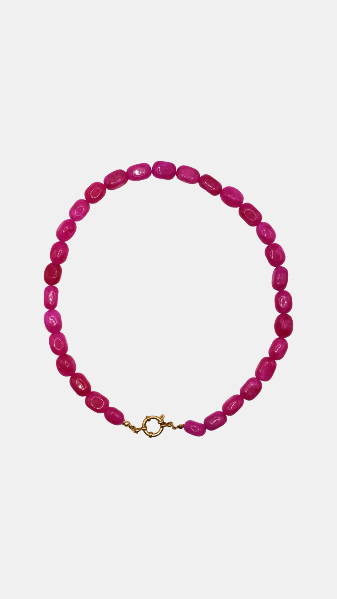 Collar de piedra natural jade rosa engarzado a mano con cierre marinero. Ideal para usar solo o con uno de nuestros charms de cerámica. Mide 42,5 cm