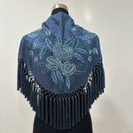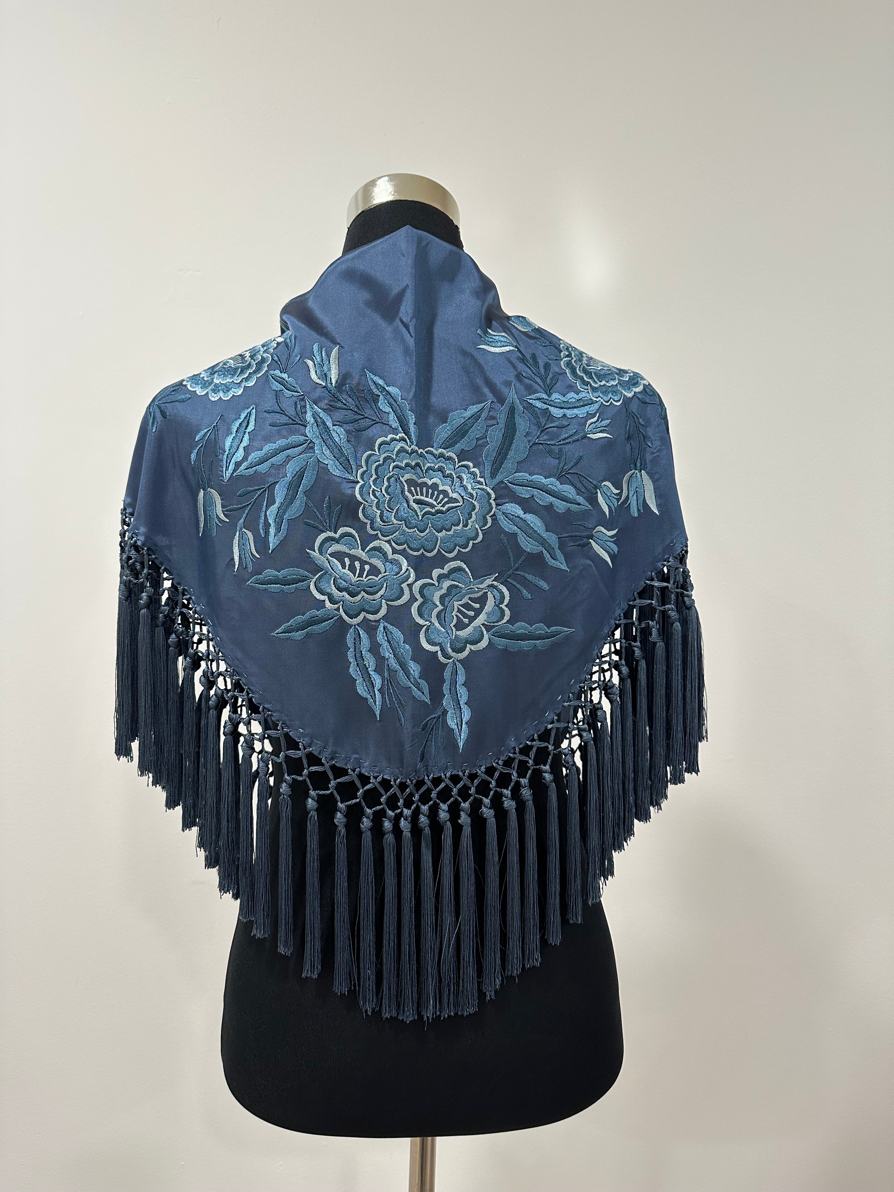 Mantón azul petróleo bordado Cantillana