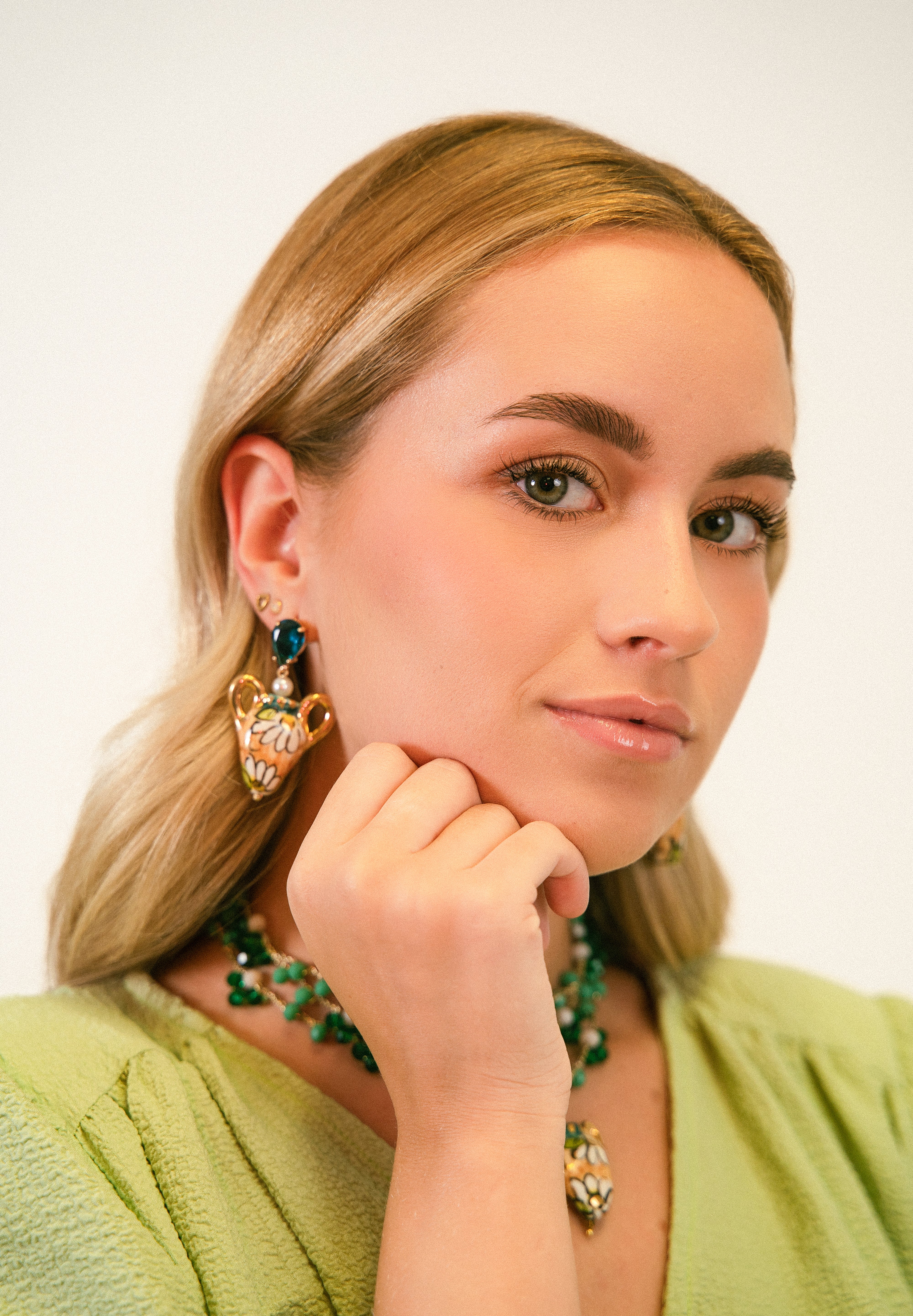 Cada pieza está hecha a mano con materiales seleccionados con cariño: perlas naturales, cuentas de vidrio, cerámica pintada, cristales y acabados dorados de alta calidad. Siempre buscamos que sean resistentes, cómodos y con mucho brillo.